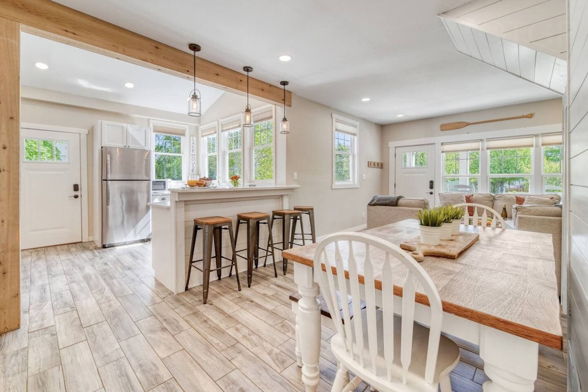 GemĂŒtlich, charmant, romantisch und modern. Huusli ist der perfekte Ort fĂŒr einen Kurzurlaub zu zweit, nicht zu groĂ, nicht zu klein. Eine hohe Decke mit einem Holzofen begrĂŒĂt dich im Hauptwohnbereich mit einer modernisierten KĂŒche, einem umgestalteten Badezimmer und zwei entzĂŒckenden Schlafzimmern. Ein Bonus ist der Raum fĂŒr alle Jahreszeiten, in dem du alle deine Mahlzeiten einnehmen oder deinen morgendlichen Kaffee inmitten der Natur genieĂen kannst, ohne Angst vor Insekten zu haben. Schaffe neue Erinnerungen, feiere einen Jahrestag oder entspanne dich einfach an diesem magischen Ort.