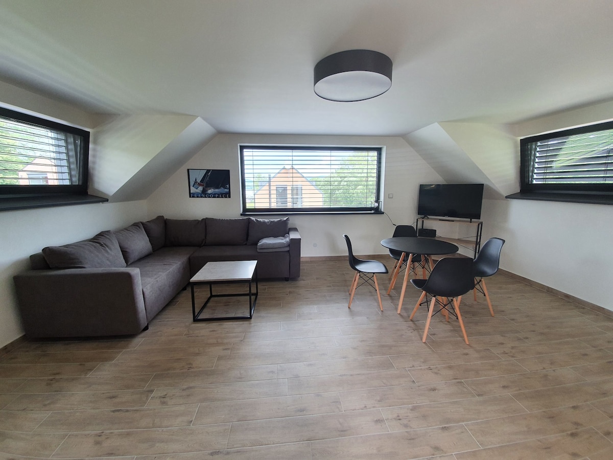 Eine moderne, voll ausgestattete Studio mit 26m² für 1–4 Personen, in einer einzigartigen Lage, 80m vom berühmten Strand, Radweg und Yachtclub entfernt. Die Wohnung ist Teil eines Doppelhauses mit eigenem Eingang und eigener Sitzgelegenheit im Freien in einem gemeinsamen Garten. Große Balkontüren bieten Zugang zum Garten. Die Wohnung ist mit Fußbodenheizung, Außenjalousien und rahmenlosen Türen ausgestattet. Parkplatz, Hot Tub, Sauna, WLAN und Abstellmöglichkeiten für Fahrräder, Kinderwagen usw.