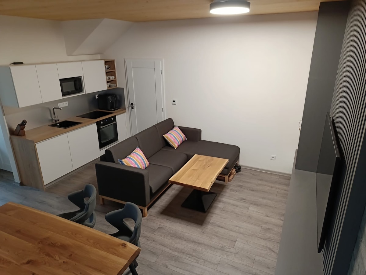 Das Objekt befindet sich in einem ruhigen Teil der Stadt Křemže und ist für Familien mit Kindern geeignet. Das Gebäude wurde kürzlich renoviert. Es enthält 2 Apartments mit separaten Eingängen, während sich im Dachgeschoss ein Gemeinschaftsraum befindet. Die Gesamtbelegung beträgt 11 Personen. Es gibt einen überdachten Außenpool, einen Kamin mit Grill, einen Kinderspielplatz mit Sandkasten und ein Trampolin. Český Krumlov und Budějovice bis 15 km. Für weitere Informationen zögern Sie nicht, mich jederzeit zu kontaktieren :)