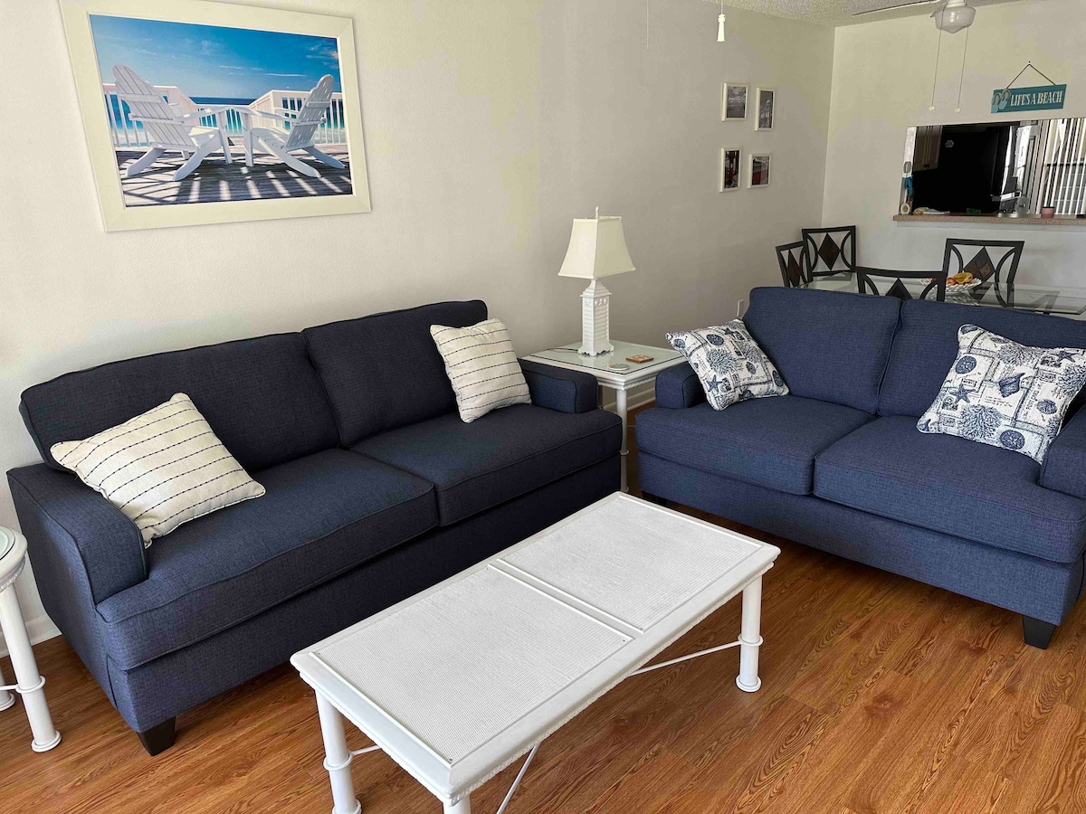 Eingebettet in eine charmante, ruhige Gemeinschaft von nur 8 Einheiten bietet diese wunderschön renovierte Strandwohnung die perfekte Mischung aus Entspannung und Komfort. Die Wohnung ist nur einen kurzen Spaziergang (ca. 150 Schritte!) vom unberührten weißen Sandstrand entfernt, wo du Sonne tanken und die Aussicht auf die Küste genießen kannst. Wunderbarer Familienurlaub oder Kurzurlaub für Paare. Privat, überdacht, 2 Parkplätze. Waschmaschine in der Einheit. Strandwagen, Stühle und Ausrüstung vorhanden. Ein verstecktes Juwel in der Nähe von allem, was du für einen erholsamen Inselaufenthalt benötigst.