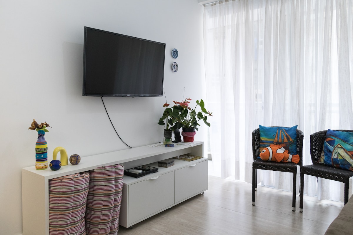 Die Wohnung wurde für mich und meine Familie entworfen, was alles noch spezieller macht. Deshalb haben die Zimmer Klimaanlage und Boxspring-Doppelbetten und Sie werden alles vorfinden, was man in einer Residenz braucht (einschließlich WLAN). Die Lage ist ausgezeichnet: in der Nähe des Strandes, des Einkaufszentrums, der Bars und Restaurants. Wahrscheinlich werden Sie nicht einmal das Auto benutzen (übrigens, es gibt zwei Garagenplätze). Ich hoffe, Sie genießen es!