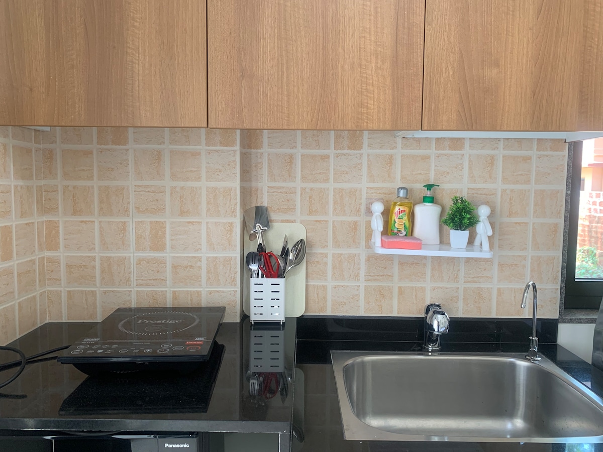 Dieses zweite Zuhause ist eine gut ausgestattete Studiowohnung für Paare. Die Unterkunft ist perfekt für Touristen, die nach kurzen Aufenthalten suchen, sowie für Menschen, die von zu Hause aus arbeiten möchten. Die Wohnung verfügt über eine 24X7-Generatorstromversorgung und Highspeed-100-MBPS-WLAN. Die Lage ist zentral an der touristischen Küste von Nord-Goa und alle Strände sind innerhalb von 10-20 Minuten Fahrt leicht erreichbar. Genieße ein stilvolles Erlebnis in dieser zentral gelegenen Unterkunft.