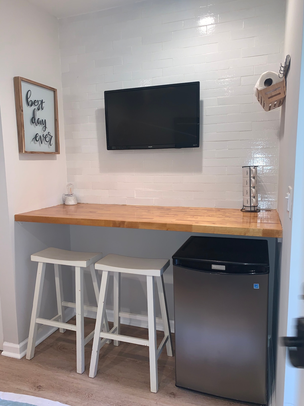 This meticulously curated Japandi-inspired studio is perfect for remote work or a peaceful retreat. The space features a cozy queen bed, small loveseat, and seating area. Enjoy high-speed internet, TV, and a writing desk for productivity. The suite includes a kitchenette with a fridge, microwave, and coffee maker. Located in a quiet, safe neighborhood, with access to a backyard fire pit for relaxation. Ideal for a calm, comfortable, and productive stay.