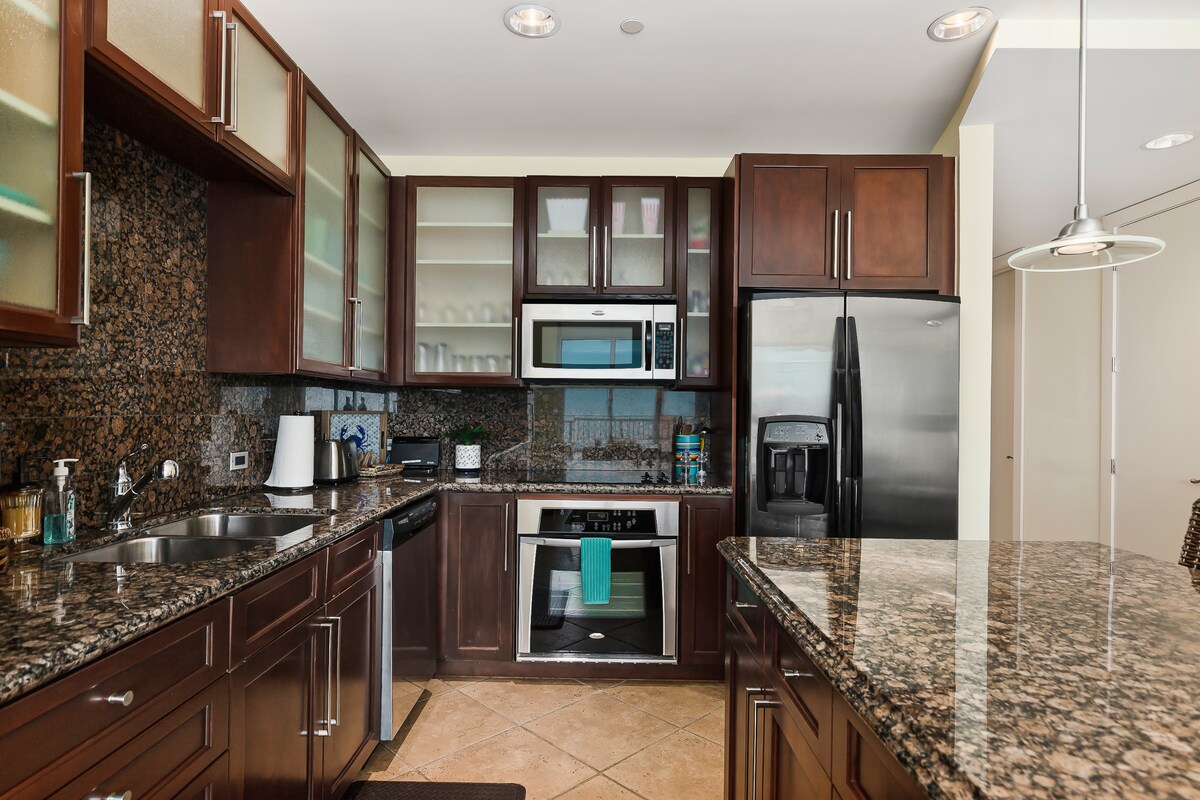 Now accepting bookings within 3 day advance only. 3BD sleeps 8 people, full kitchen and all amenities. The master suite is a true sanctuary, with a large window overlooking the water, a luxurious ensuite bathroom, and a walk-in closet. Live the beachfront lifestyle you've always dreamed of in these exquisite residences. ONLY IMMEDIATE SAME FAMILY MEMBERS ALLOWED DURING MARCH AND APRIL. A $49 per day resort fee will apply. No pets allowed. PLEASE READ ALL OUR REQUIREMENTS IN OUR HOUSE RULES.