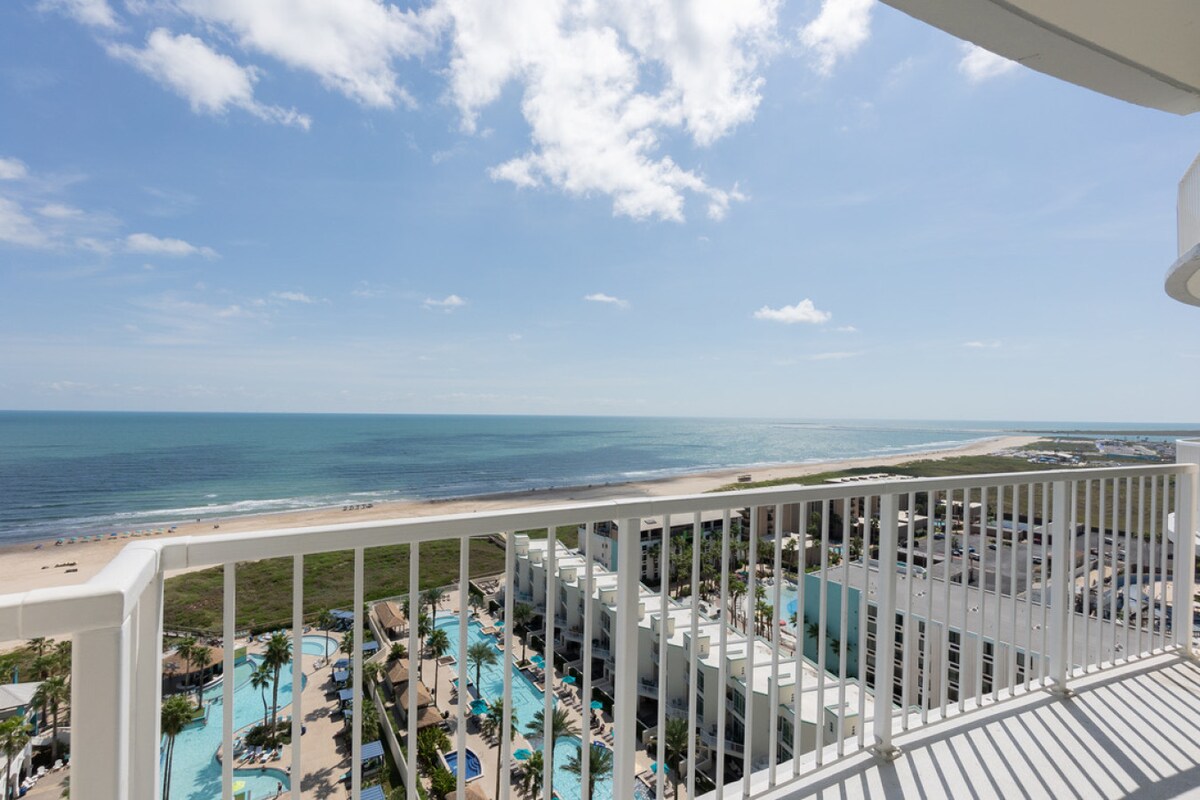 Komm und genieße die atemberaubende Aussicht von unserer 3-Zimmer-/2-Bad-Eigentumswohnung im 5. Stock im erstklassigen Resort auf der Insel! Dieses Haus bietet einen herrlichen Blick auf den Pool, den Strand, einen schönen Blick auf die Bucht und den Damm und einen ausgezeichneten Blick auf die Space X-Starts. Ergänze deinen Aufenthalt mit allen Annehmlichkeiten, die das Apartment bietet. Buchen Sie noch heute Ihren Urlaub und genießen Sie das Beste, was South Padre Island zu bieten hat! HINWEIS: Muss mindestens 35 Jahre alt sein, um Spring Break und Semana Santa zu buchen STR #2024-0032
