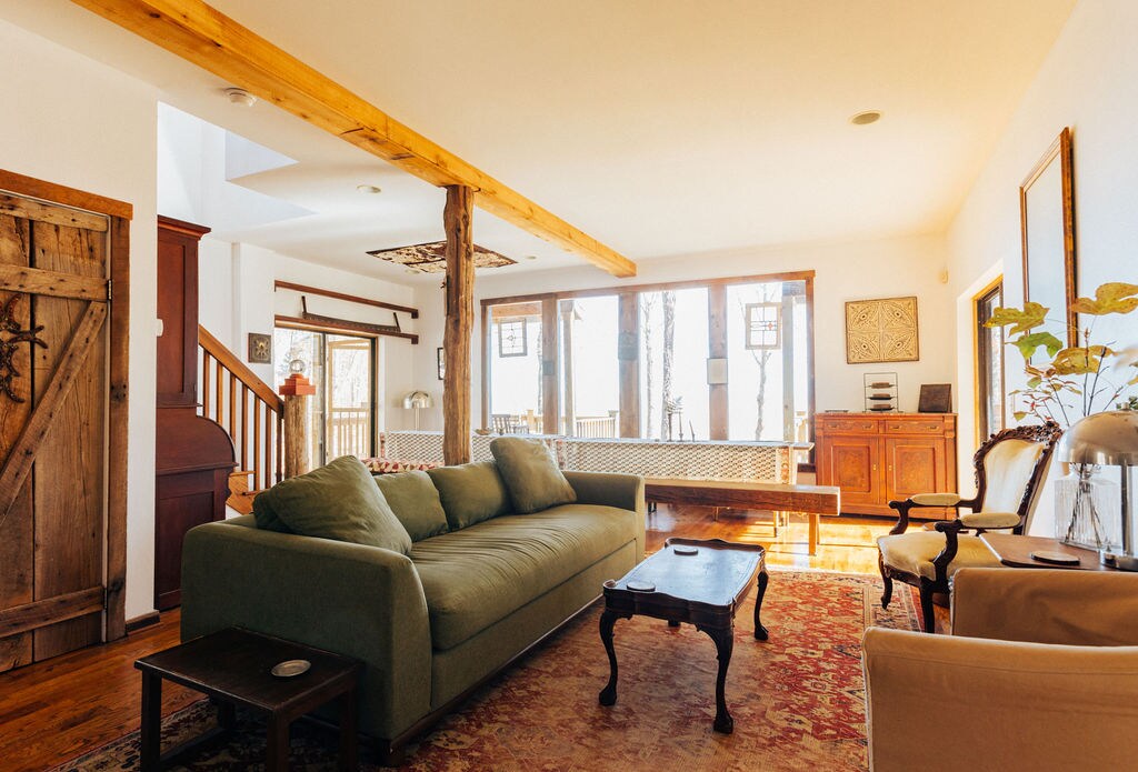Acres of nature surround and insulate your moment of rest here at the Laurel Zome. With intriguing geometry drawn directly from the architecture of mountain laurel blossoms, pangolin scales, and pinecones—the simplicity and focus of the zome allows a lofty experience. Wake to natural light spilling in from expansive faceted windows and skylights. Enjoy the ritual of stoking a fire to prime your body to slip into downy sheets for sleep, or into to the waters of your Koto Elements spa tub.