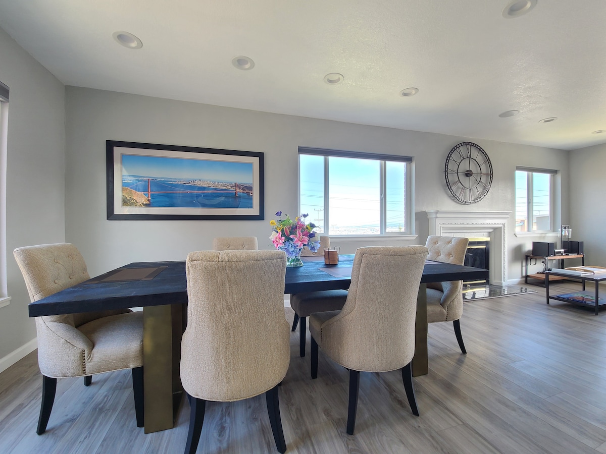 Genieße Luxus in unserer Unterkunft mit 4 Schlafzimmern und Meerblick, nur wenige Minuten von San Francisco entfernt. Wache in jedem Zimmer mit faszinierenden Ausblicken auf und finde Entspannung im offenen Raum, der mit gewölbten Decken und einem Gaskamin geschmückt ist. Für Arbeit oder Freizeit profitieren Sie von Schreibtischen und schnellem WLAN in jedem Schlafzimmer. Bleiben Sie mit unserem Peloton-Fahrrad aktiv oder entspannen Sie sich im Freien mit einem Whirlpool, einer Feuerstelle mit Erdgas und einem 30'x20' großen Kunstrasen. Hinweis: Keine Partys, max. 8 Gäste, 3 Autos. STR-Genehmigungsnummer: 14614799