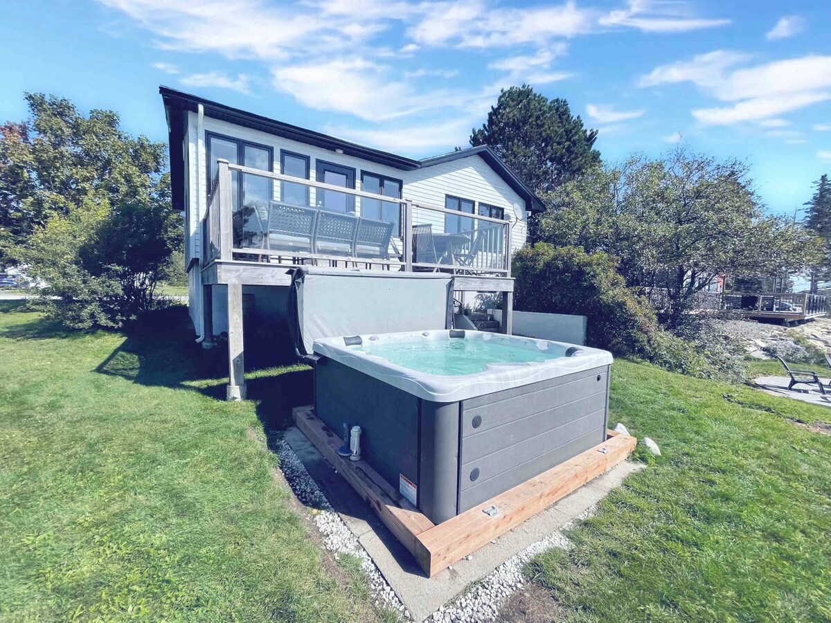 Waterfront Cottage: Huge deck, sun sets, Private Hot Tub: 6 Person tub for 2. Panoramic Water Views: Modern Cabin: privacy and a peaceful environment. Large Deck: outdoor living space both you can take in the sun or retreat into the share. Nature Retreat with wildlife Romantic Escape: for couples, Heated floors, Shower tower, queen master, an extra guest could sleep on the couch. Super private chefs kitchen. Well equipped for all seasons.