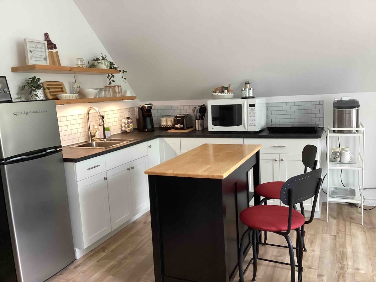 Lovely, newly renovated, but retro influenced studio on a large lot away from the street. Come by, cool off (it's always cooler in Blacks) and watch the deer play. No deer? Look to the sky and you may see a bald eagle. Within a few blocks is the Kitchen restaurant, Irving / liquor store, the harbour, Connor Bros & Cooke's Aquaculture. A bit further is the Grand Manan ferry, sea glass beach, Connor Bros Nature Preserve and the Pea Point Lighthouse.