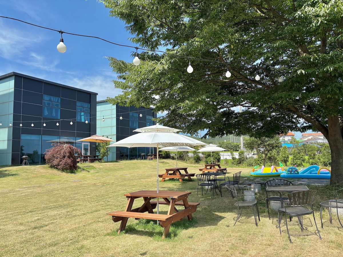 기준5명 최대8인까지 입실가능한 온가족,친구와 단체분들이 함께 머물기에 적합한 넓은 숙소입니다. 개별 독채형으로 분리되어 소음걱정 없이 자유롭게 즐기세요. 객실창에서 바라보는 넓은정원의 꽃과 커다란 느티나무들,측백나무,소나무,허깨나무등은 저희 펜션의 자랑입니다. 꽃지해수욕장까지 도보10분 자연휴양림까지 차로5분 각종 수산물 먹거리가 풍부한 방포항까지 차로2분거리에 있고 안면도수산물시장도 차로 5분거리입니다. 물때표를 보시고 간단한 해루질 장비는 무료대여해드립니다. 병술만 어촌마을체엄장도 차로4분거리입니다. 객실앞 테라스에서 개별바베큐가능합니다.