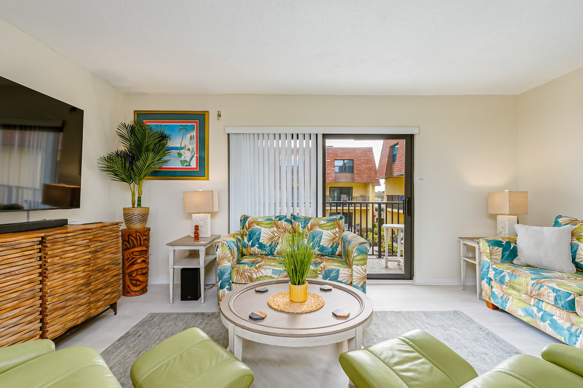 Willkommen in deinem stilvollen Rückzugsort am Meer in Cocoa Beach, Florida, der deine Urlaubsträume in Florida zum Leben erweckt. Diese geräumige 1200 Quadratfuß große Wohnung ist nur wenige Schritte von einem großen Pool und dem Strand entfernt. Es ist der ideale Ort für Familien oder Paare. Tritt ein und werde von einem offenen Wohnbereich begrüßt, der mit aktualisierter Einrichtung geschmückt ist, Fenstern, die den Raum mit natürlichem Licht durchfluten, große LCD-Fernseher und eine voll ausgestattete Küche, die Mahlzeiten am Esszimmertisch oder auf einem privaten Balkon ermöglicht.
