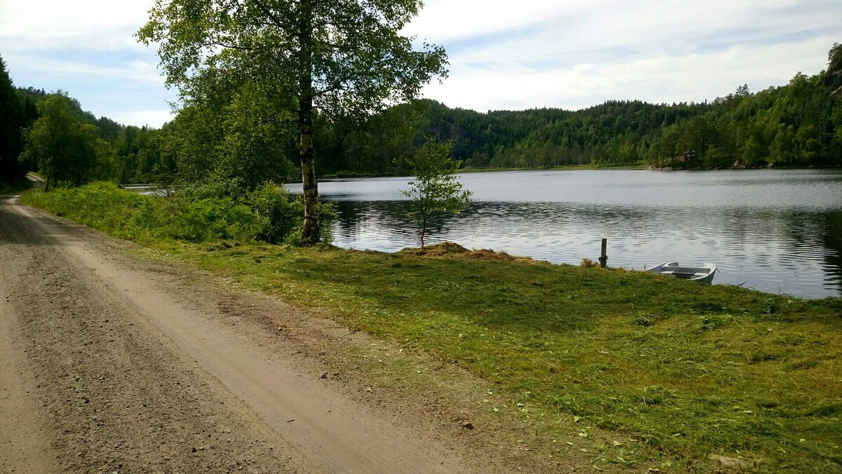Teil eines Hauses am See, ohne Gemeinschaftseinrichtungen. 85 qm Platz plus Terrasse. Große Küche/Esszimmer und Badezimmer im unteren Erdgeschoss. Eigene Terrasse außerhalb der Küche mit Seeblick und Zugang zum Garten und See. Loft-Wohnzimmer mit Seeblick und überdachtem Balkon sowie zwei großen Loft-Schlafzimmern. Aktivitäten: Schwimmen, tolles Wandergebiet, Bootfahren und Angeln auf dem See. 30 Minuten nach Kristiansand & Mandal 15 Minuten zum besten Lachsfluss in Südnorwegen. Platz für bis zu 6 Gäste.