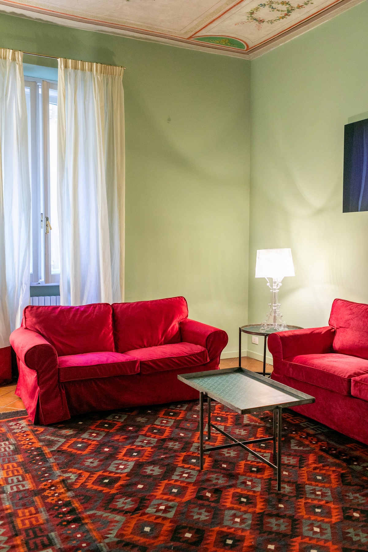 Entdecke ein funkelndes Juwel, in dem jedes Möbelstück die Handwerkskunst afghanischer Wandteppiche, Teppiche aus Aleppo und Batiks aus Java zur Schau stellt. Das lebendige Zuhause zeichnet sich auch durch eine Reihe von Möbeln, ein offenes Layout und kontrastierende Motive aus. Das Loft ist das Haus eines Schriftstellers und eines Reisenden. Ich war lange Zeit Kriegskorrespondent und auf meinen Reisen habe ich immer darauf geachtet, ein Buch, einen Teppich, einen Stein, ein Gemälde, ein Fragment der Erinnerung mitzubringen, damit die Welt in meinem römischen Zuhause leben kann. Die Wohnung steht für kurze Aufenthalte, aber auch für längere Zeiträume zur Verfügung. Weniger als einen Block vom Opernhaus entfernt, könnte es der perfekte Ausgangspunkt für Sänger und Musiker sein. Giuseppe übernachtete hier und das sagte er: „Die Wohnung befindet sich in einer ruhigen Straße, abseits von Monti. Wenn du reinkommst, ist alles sehr charmant. Es ist kein reguläres „B&B“-Erlebnis, es ist die Wohnung einer Frau, die viel für die Arbeit reist. Das Ergebnis ist sehr stilvoll und warm und voller wunderbarer Details. Wir waren zehn Tage hier und haben uns wirklich wie zu Hause gefühlt.“ Dir steht das gesamte 70 qm große Loft zur Verfügung. Das Loft verfügt über zwei Bereiche, den Wohnbereich und den Schlafbereich. Die Unterkunft befindet sich nur wenige Gehminuten vom Hauptbahnhof Termini und der Pracht des Kolosseums entfernt. Es ist ein großartiger Ausgangspunkt für einen Musiker, einen Schriftsteller oder einen Künstler, der die antike Schönheit der Ewigen Stadt erkunden möchte. Die Wohnung ist 65 Quadratmeter groß und befindet sich fünf Gehminuten vom Bahnhof Termini und zehn Minuten vom prächtigen Kolosseum entfernt. Hell und ruhig, ist es der ideale Ausgangspunkt für einen Musiker, einen Schriftsteller oder einen Künstler. Wenn du nicht zu Fuß gehen möchtest, befindet sich das Loft zwischen den beiden Haupt-U-Bahn-Linien – A und B –, die dich zu den meisten Sehenswürdigkeiten bringen. Es gibt genügend Ruhe und Licht. Das Licht ist wichtig, glaube ich, und die Stille auch. Das Loft befindet sich im 6. Stock, mit dem Aufzug. Die Unterkunft befindet sich nur wenige Gehminuten vom Hauptbahnhof Termini und der Pracht des Kolosseums entfernt. Es ist ein großartiger Ausgangspunkt für einen Musiker, einen Schriftsteller oder einen Künstler, der die antike Schönheit der Ewigen Stadt erkunden möchte.