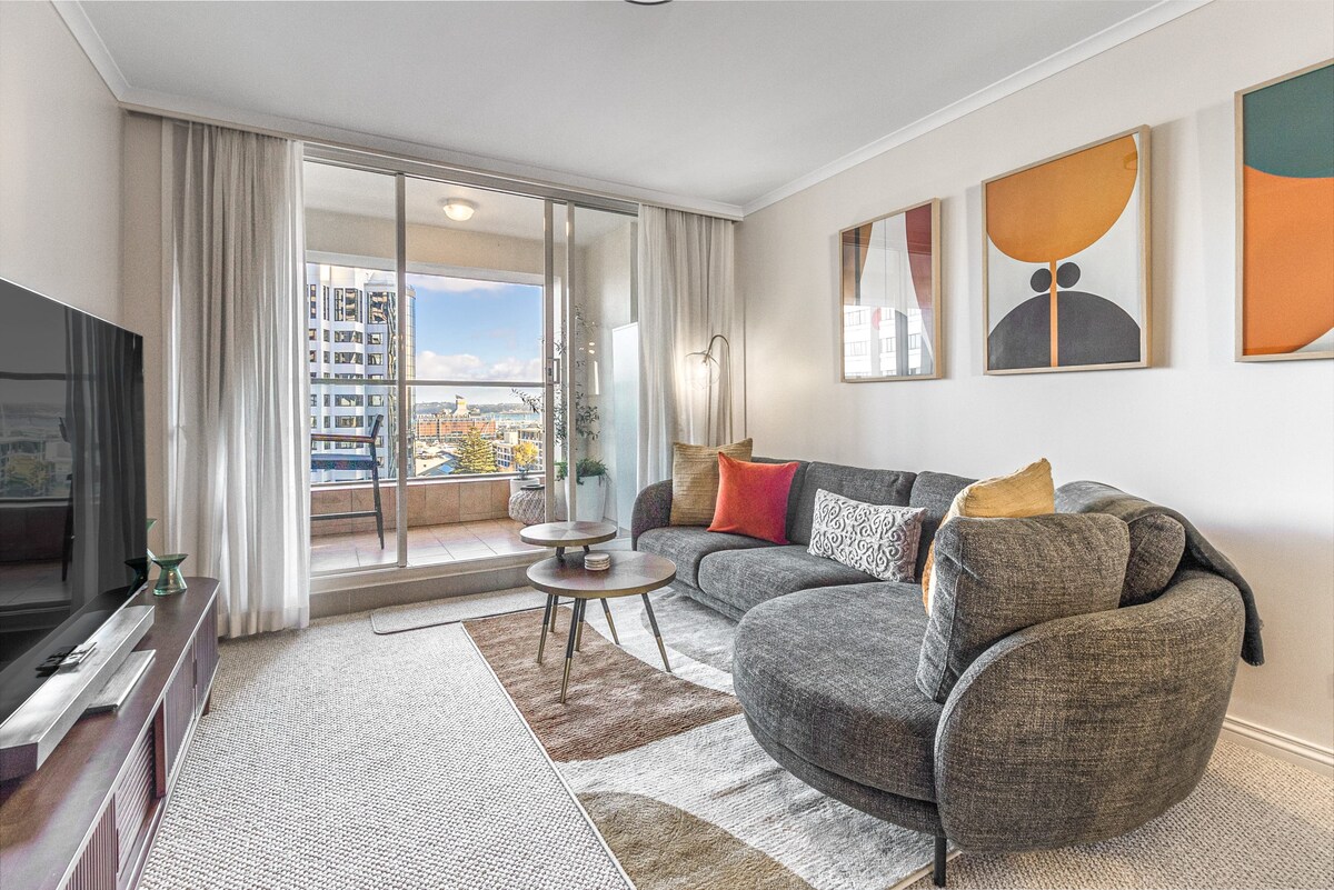Willkommen in dieser modernen und komfortablen Studio-Wohnung im Stadtzentrum. Sie liegt zentral in der Nähe von Skytower, Queen Street, K' Road, Ponsonby. Der offene Ess- und Wohnbereich, eine raumhohe Schiebetür mit Balkon, eine voll ausgestattete Küche, ein Smart-TV, ein super bequemes Bett mit hochwertiger Bettwäsche, moderne Möbel, unbegrenztes Highspeed-WLAN und eine private Waschküche machen es perfekt für Reisen und Geschäftsreisen. Genieße einen beheizten Innenpool, einen Fitnessraum und eine Sauna.