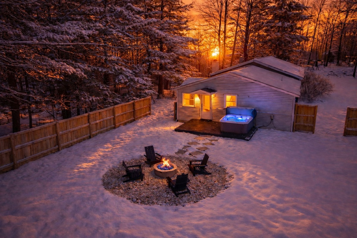 Erlebe Pure Michigan in unserer neu renovierten 2-Zimmer-Hütte am Rande des Manistee National Forest, in der Nähe des White River. Entspanne dich mit der ganzen Familie in dieser friedlichen Unterkunft oder genieße ein eher auf Erwachsene ausgerichtetes Erlebnis. Wir befinden uns in unmittelbarer Nähe von Michigans Abenteuer, Kanu und Kajak (auch Reifen!) Rental on the River, mehrere kleine Seen und Strände am Lake Michigan sowie ORV-/Schneemobilwege befinden sich direkt an der Straße. STARLINK-INTERNET
