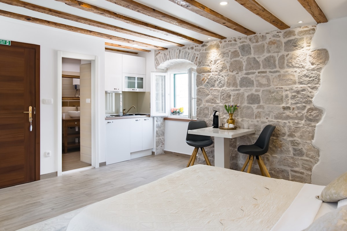 Apartment is ideal for 2 peoples with big double bed, kitchen and bathroom. Amenities include everything you need for a comfortable stay, free wifi, tv, towels, washing machine , fridge freezer, microwave, hairdryer, iron... Due to is attractive location you can reach all the historic sights of this beautiful city in just few steps, as well as numerous cafes, bakeries, restaurants, shops... The apartment is newly renovated. I'm available 24/7 for you. If you need something you can contact me old the time. It's located in the heart of the city but still close to the beach, market, fish market, shopping, restaurants, and sights. The building has been designated a UNESCO World Heritage site, and is over 1,700 years old. Bus station, train station and ferry port is only few minutes by walk. We are happy to help you with any advice or anything you need. In case you need transfer from airport we are able to organize it.