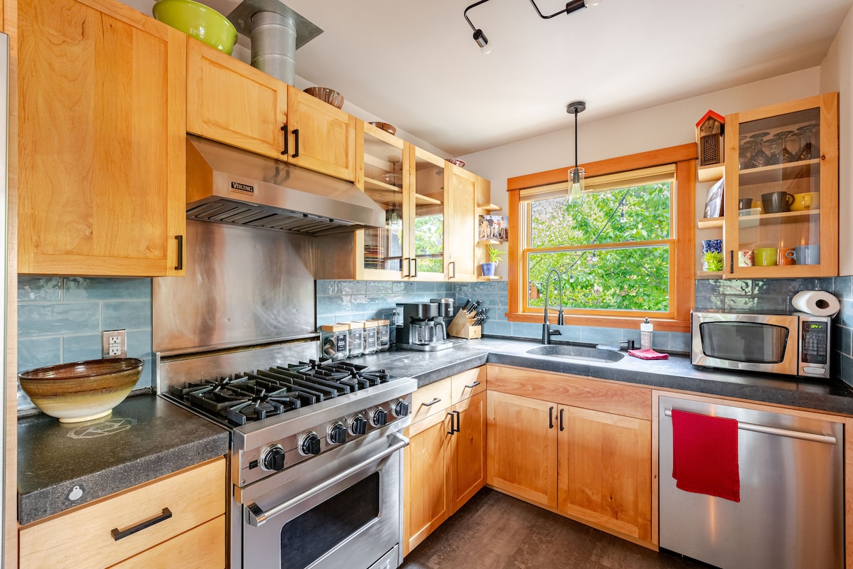 This delightful two-bedroom home is nestled in the charming and historic Garland District, one of Spokane’s most beloved neighborhoods. Perched on a scenic bluff, the home offers stunning views of downtown Spokane, providing a beautiful backdrop day and night. The home is pet-friendly and features a fully fenced and landscaped backyard—perfect for relaxing or letting your furry companions roam. A Level 1 EV charger (110v outlet) is available in the carport. City of Spokane Permit R24-540STRN