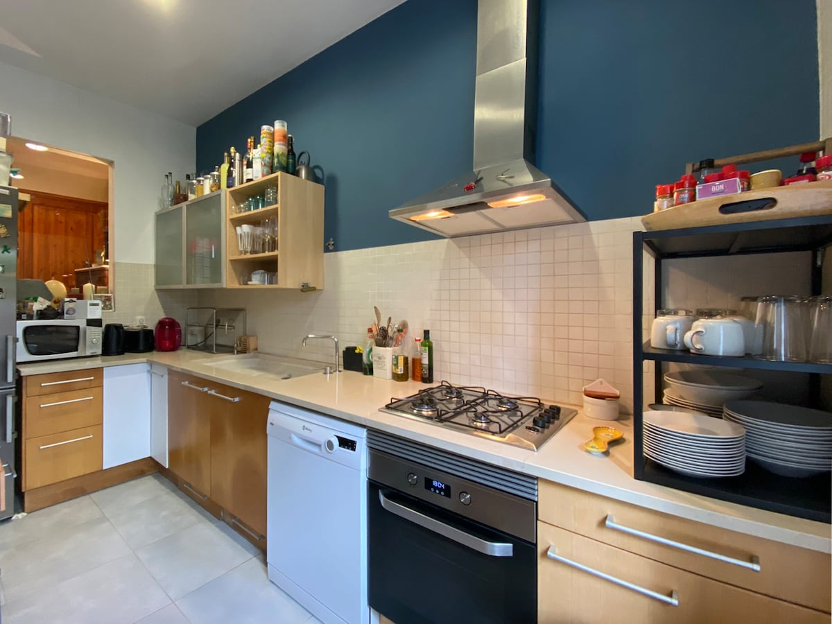 Appartement de 70m2 comprenant 2 chambres et 2 salles de bains, un séjour/cuisine avec vue sur Castelldefels et la mer. Le logement se situe dans une villa qui comprend trois appartements. Notre famille habite à l'étage supérieur et nous louons également un studio voisin à celui-ci à l'étage inférieur (airbnb.com/h/chilloutbellavista). Parfait pour les familles, le logement bénéficie de nombreuses aménités: jardin, piscine, terrain multisport. L'appartement ne convient pas à 4 adultes.