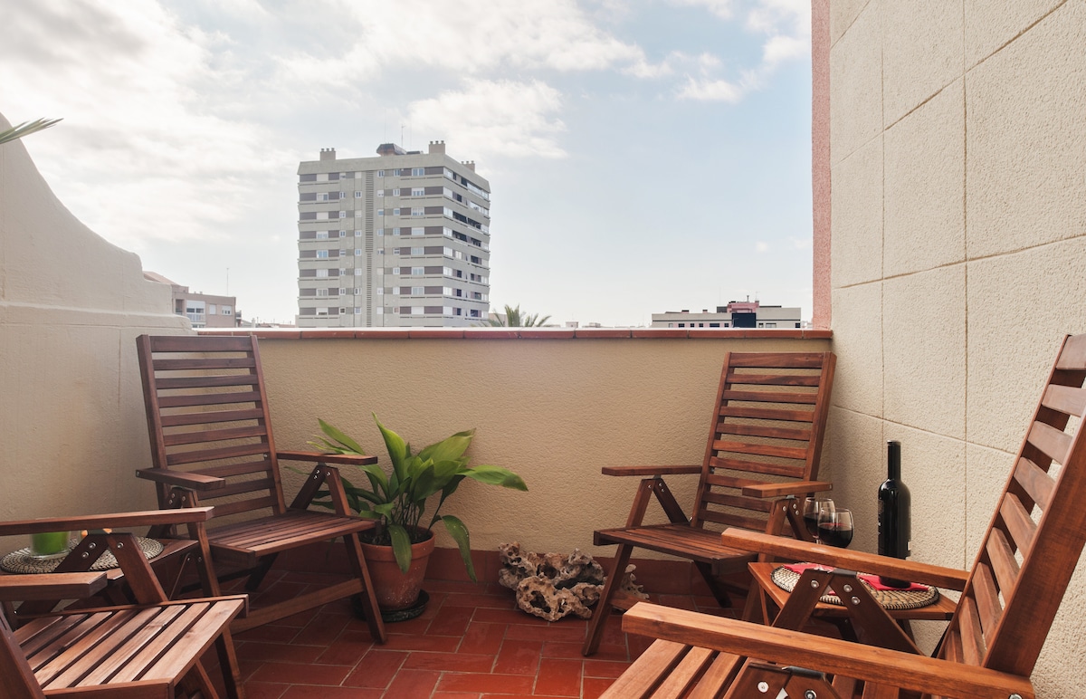 Diese wunderschöne 90 m² große, böhmische Maisonette-EIN-ZIMMER-Wohnung bietet einen herrlichen Blick über die gesamte Stadt von der großen, mit Pflanzen bedeckten Terrasse. In Gehweite von Las Ramblas. Es gibt ein Schlafzimmer mit Queensize-Bett im Erdgeschoss neben einem langen Balkon und einen weiteren offenen Wohnbereich im Obergeschoss neben der Terrasse. Es gibt einen Smart-TV, kostenloses WLAN und eine Waschmaschine und einen Trockner. (Bitte beachte: Es befindet sich im 6. Stock und es gibt KEINEN Aufzug). Die Kurtaxe (6,25 € pro Person/pro Nacht) ist im Preis pro Nacht INBEGRIFFEN.
