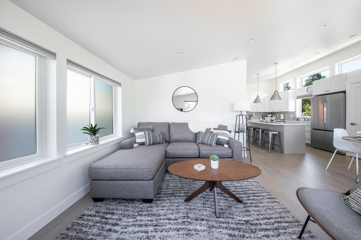 Modernes Bauernhaus am Lake Sammamish – 2 Schlafzimmer / 2 Badezimmer mit Klimaanlage und Gaskamin. Beide Schlafzimmer verfügen über weiche Daunendecken und Kissen. Genießen Sie Parkettböden, eine gut ausgestattete Küche mit neuen Geräten, Waschmaschine/Trockner, Essbereich für 6 Personen, ein Schlafsofa, 55-Zoll-Fernseher und eine Kaffeebar. Entspanne dich beim Essen mit Blick auf den See, fahre Kajak an der Küste oder erkunde den Lake Sammamish Trail direkt vor deiner Tür. Gut erzogene Hunde sind willkommen!