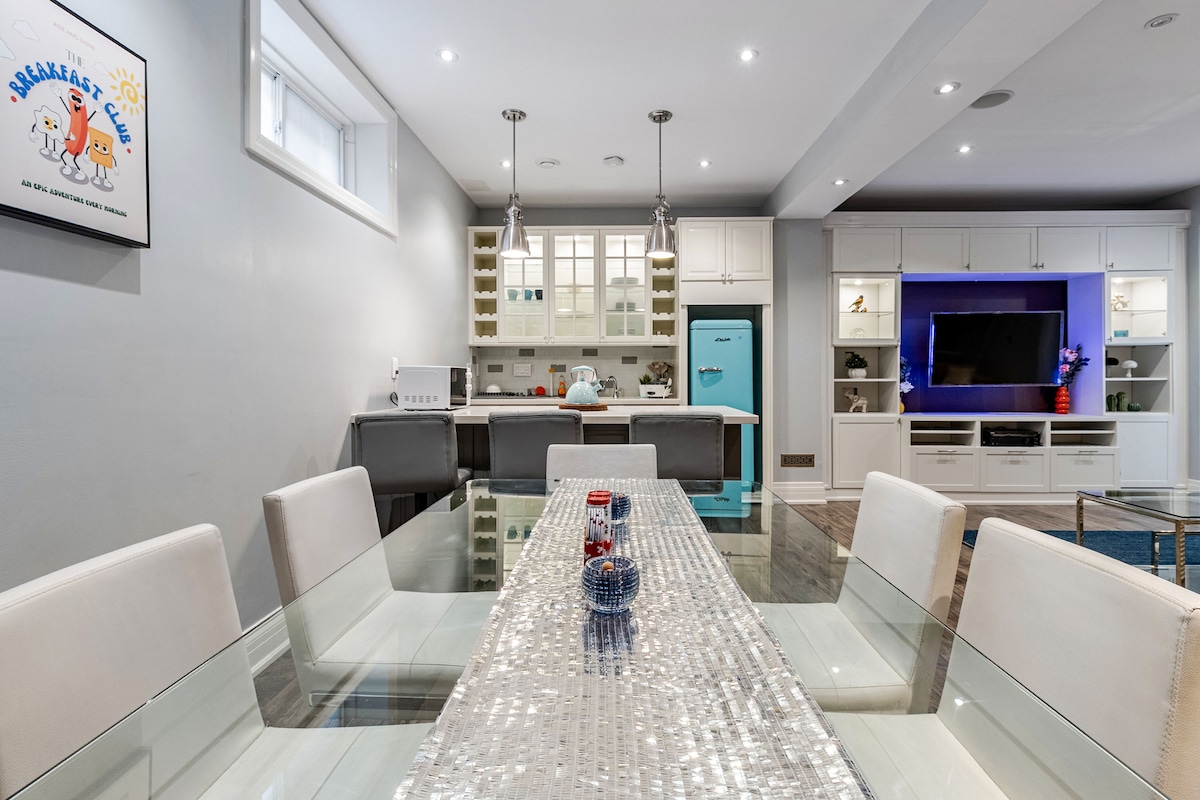 Complimentary breakfast is available—just let us know by 4 PM the day before. Private, Spacious Basement Suite | Separate Entrance | Near Downtown Brampton | 20 mins from Pearson Airport | 5 minutes from GoStation | Close to Bus Stop, Park, restaurants 1 bedroom with 2 queen beds with projector, a large living room with bed-cum-sofa, soundbar, electric fireplace, 75” TV, dining table, and lift-top coffee table. Workspace, vanity, fast Wi-Fi, full kitchen with snacks, and clean washroom.