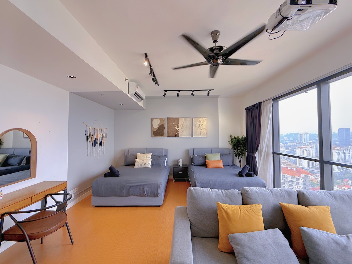 Tauche mit einem 55-Zoll-XiaoMi-Smart-TV mit Netflix und YouTube in Unterhaltung ein. Schnelles Internet und kostenlose Annehmlichkeiten wie Zahnpasta und Shampoo. Wache mit einem atemberaubenden, freien Blick auf die Stadt auf und genieße einen malerischen Start in den Tag. Erlebe den Inbegriff von modernem Komfort und Bequemlichkeit in einer monochrom gestalteten Privatunterkunft. Erlebe das pulsierende Petaling Jaya im SS2 Hub, wo Energie und Annehmlichkeiten aufeinandertreffen und eine geschäftige Atmosphäre schaffen.