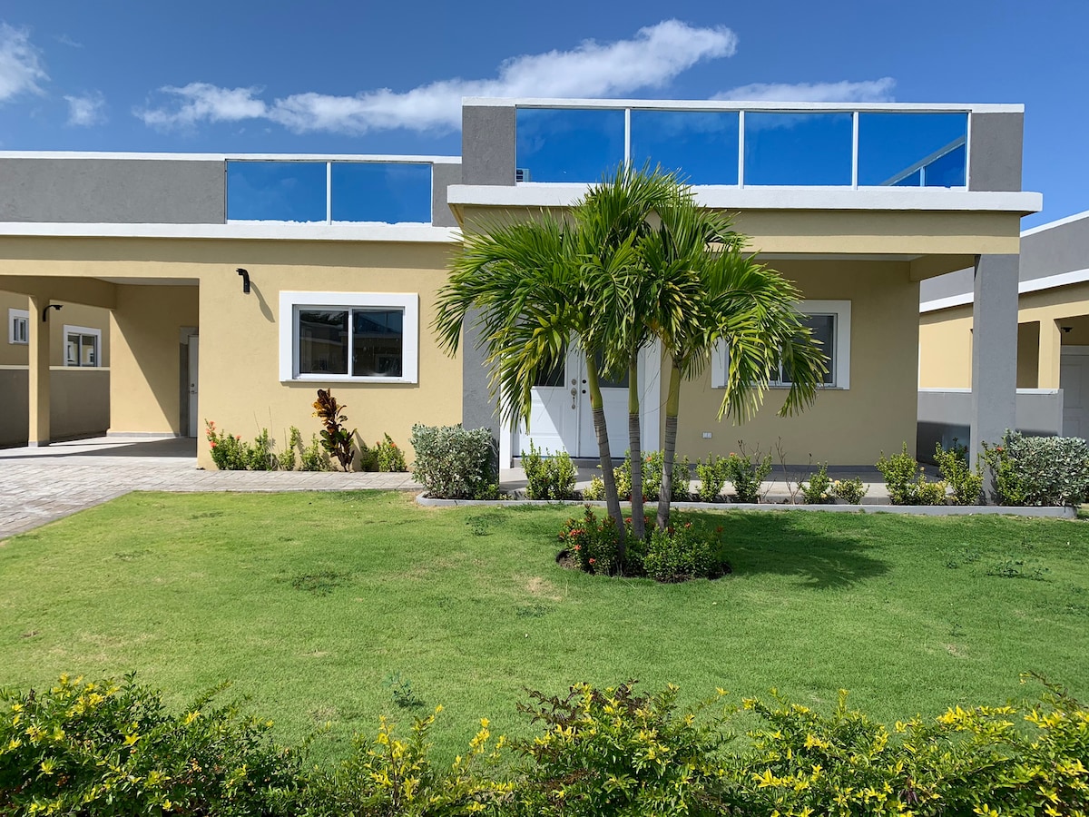 Bahia ist ein Ferienhaus mit 1 Schlafzimmer direkt an einem schönen Strand, der ideal zum Schwimmen ist.* Ideal für ein Paar oder eine Familie mit Kindern, die in einem Loft untergebracht werden können. Terrasse am Strand mit Hängematten und Gartenmöbeln. Klimaanlage und Ventilatoren. Koch inklusive. Nächtlicher Sicherheitsdienst. 50 Minuten vom Flughafen MBJ entfernt. Beliebte Sehenswürdigkeiten in der Nähe. Ein wirklich unvergesslicher, verjüngender Strandurlaub. 300 $ pro Nacht für 2 Personen, für weitere Personen siehe unten. *Strand/Wasser je nach Wetterlage