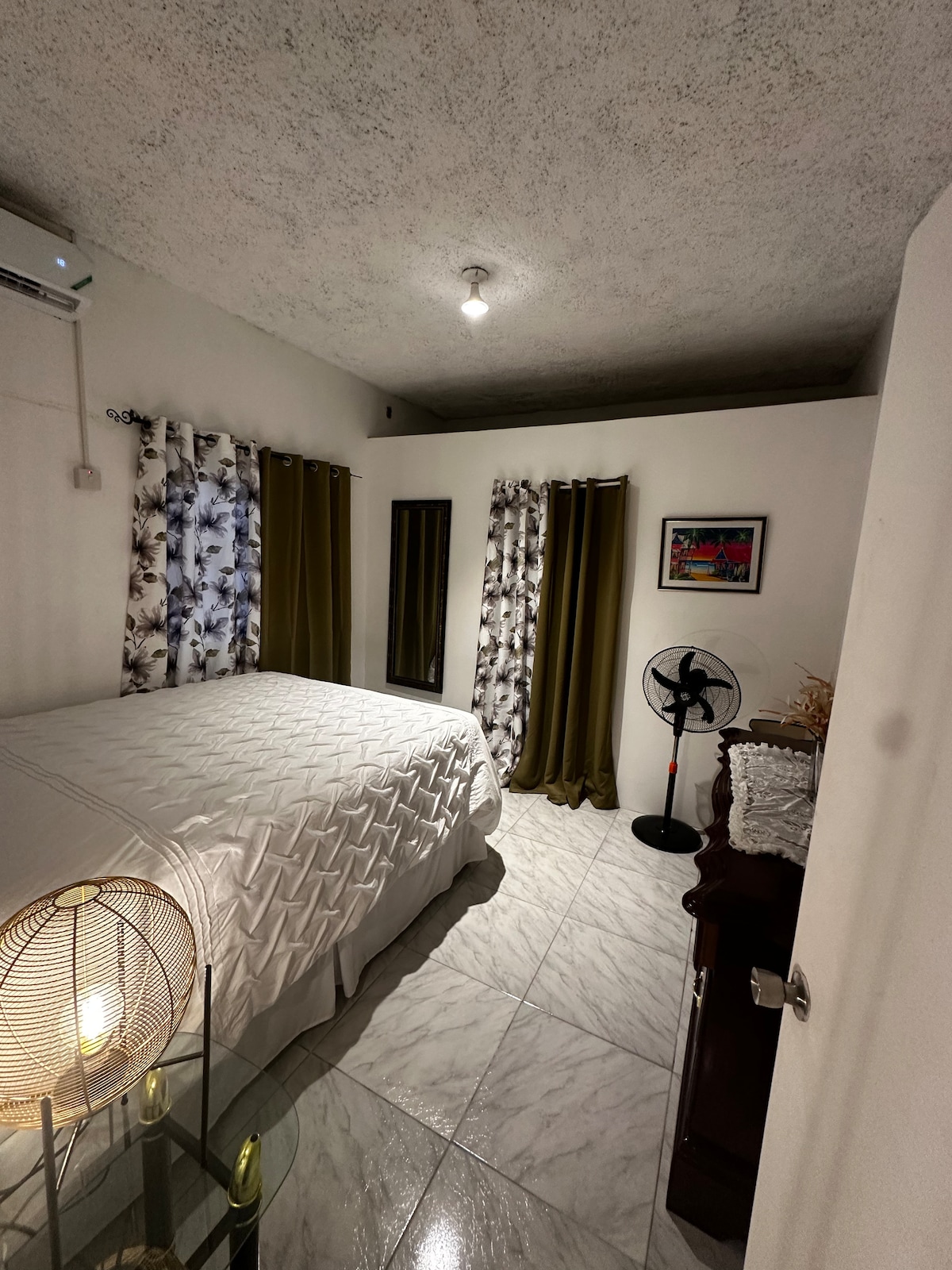 Relax in this serene, stylish upstairs apartment. If you are looking for a place that is peaceful and chic, newly designed well this is your home! Apartment has two queen beds, one room has AC and the other has a fan. Bathroom has water heater. Enjoy the simplicity of living like a local, centrally located close to the town for easy access to shopping, public transportation and entertainment. Explore the South Coast, YS Falls, Jamaica Zoo and Appleton Estate Rum Tour just to name a few.