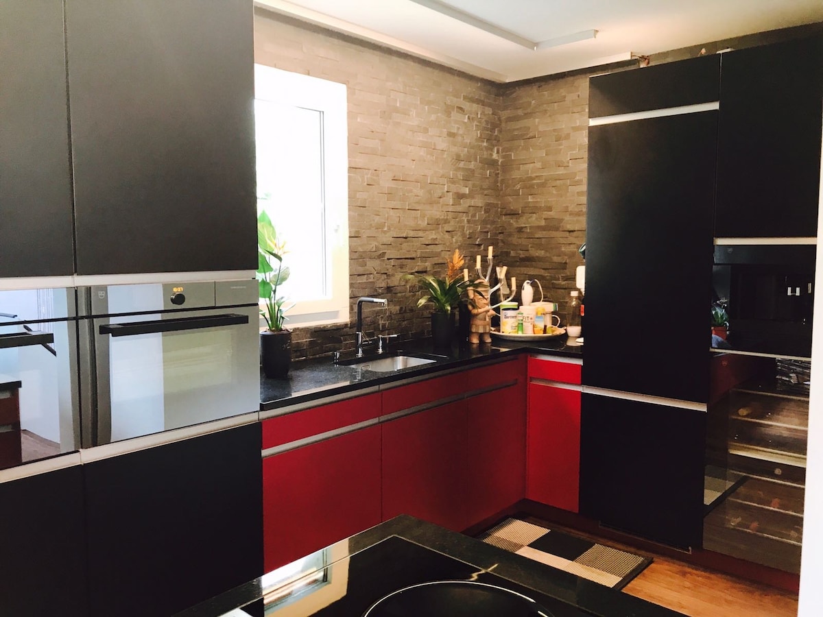 Neue, moderne Gästewohnung im angebauten Hausteil. Die Studiowohnung verfügt über drei Räume, die durch 4 und 7 Treppenstufen verbunden sind. Der mittlere Raum mit Wohnzimmer/Esszimmer und Küche ist sehr hell mit Sicht auf das Schloss Sargans. Der obere Sitzplatz bietet tolle Rundsicht auf Schloss und Berg Gonzen. Die Gästewohnung ist ideal für 2-5 Personen. Grosses Doppelbett, Kajütenbett und Einzelbett im oberen Raum. Auf Wunsch Benutzung von Whirlpool, Sauna und Waschmaschine.