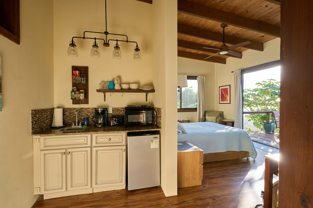 Voll ausgestattetes, geräumiges Studio mit voll ausgestatteter Küche. Schöne Aussicht auf das Meer und St. Thomas in einer ruhigen Gegend in der Nähe von Cruz Bay. Einfach zu befahrende Straßen mit flacher Einfahrt und genügend Parkplätzen. Genieße einen schönen Abend auf dem Pooldeck, um den Sonnenuntergang zu beobachten. Günstig gelegen, 10 Minuten von Stränden und Einkaufsmöglichkeiten entfernt. Liegestühle und Handtücher sind vorhanden. Wäscherei vor Ort. Gemeinsamer Grill- und Poolbereich mit der Hauptvilla auf dem Grundstück. Perfekt für einen Kurzurlaub mit Paaren.