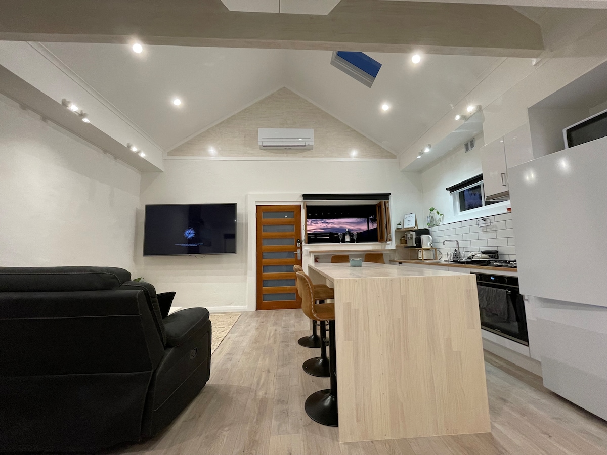 „The Haven“ ist eine vollständig eigenständige, unabhängige Wohnung. Sie verfügt über eine brandneue Küche mit Elektroherd und Mikrowelle/Umluftofen und ein brandneues Badezimmer/Wäscherei mit WC, Dusche und Waschmaschine (2019). Sie eignet sich am besten für Singles oder Paare. Maximal zwei Erwachsene. Platz für kleine Babys. Die Klimaanlage mit Umkehrzyklus sorgt dafür, dass dein Aufenthalt bei jedem Wetter gemütlich ist. Zugang zu einem funkelnden In-Ground-Pool, einem umliegenden Unterhaltungsbereich und einem Grill.
