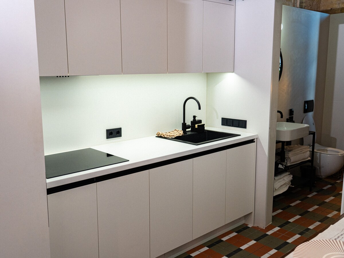 Discover minimalist peace in our designer 1-bedroom apartment in Kyiv’s heart. Space: Queen bed, Smart TV, AC & high-speed Wi-Fi. Kitchen: Fully equipped with coffee/tea. Location: New building near Universytet Metro & Shevchenko Park. Quiet, yet steps from top cafes. Perks: Private balcony, city views, and easy self check-in. ✨ Clean, serene, and perfectly located. Book your unique Japandi experience today!