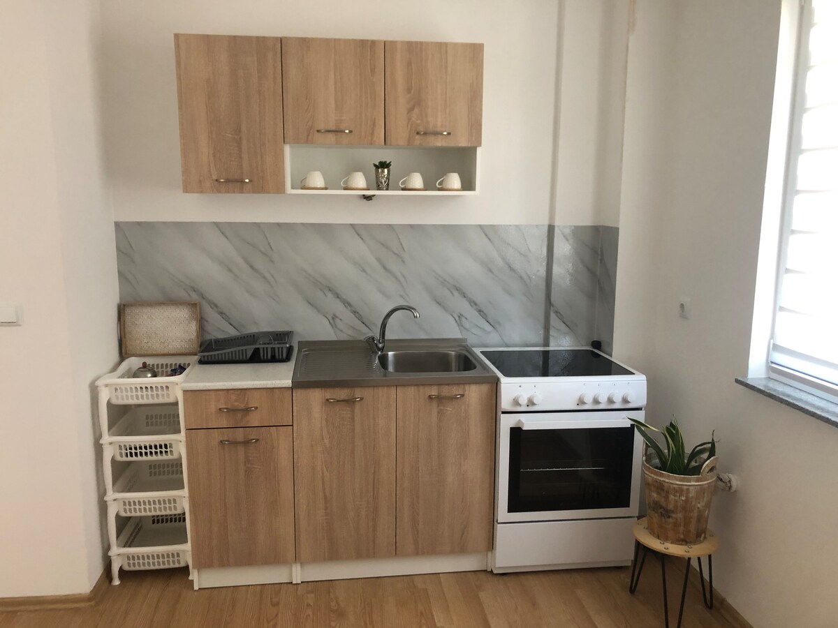 Neue, moderne, klimatisierte Wohnung, 5 km vom Stadtzentrum entfernt, in einem Geschäftsgebäude im ersten Stock. Im Erdgeschoss gibt es einen Markt und eine Kaffeebar. Im Gebäude gibt es ein Kinderspielzimmer und ein Konferenzraum. Auf der anderen Straßenseite befindet sich ein Grill- und Busbahnhof. Der Bahnhof ist 500 Meter entfernt.