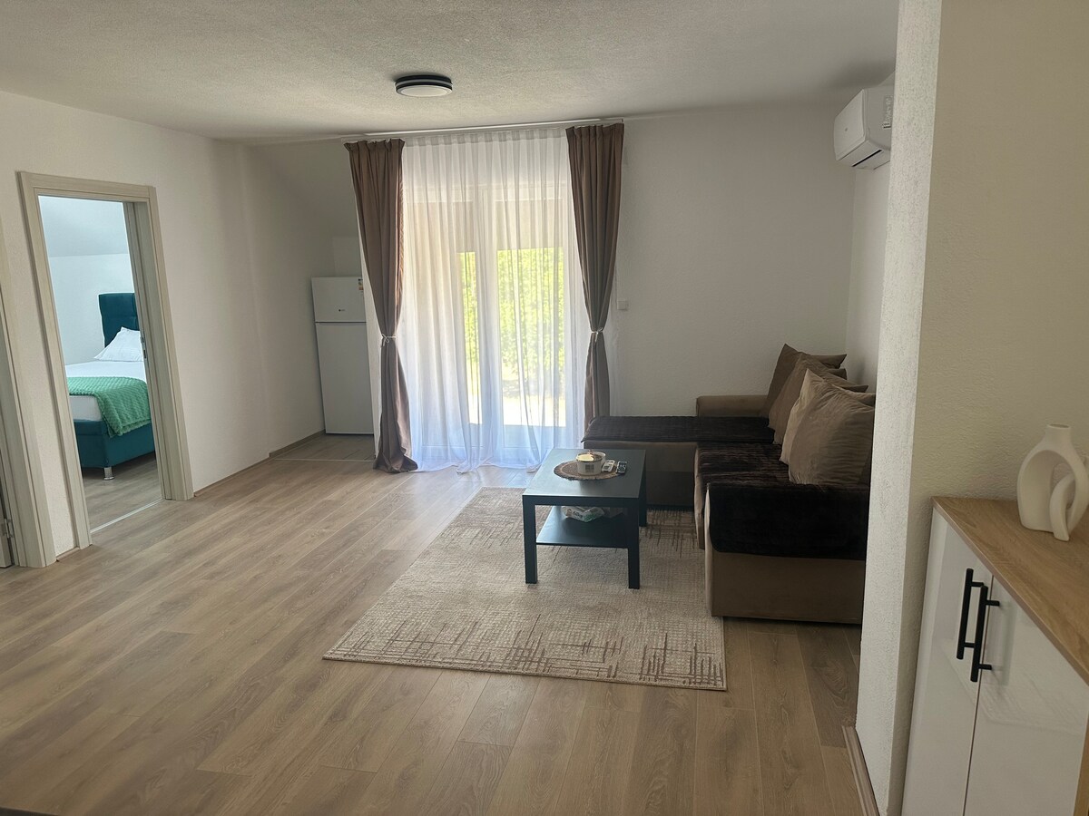 Travel Rest – gemütliche Erholung in Bujanovacska Banja Willkommen im Travel Rest, einem Apartment in einem ruhigen Teil von Bujanovačka Banja, nur wenige Minuten von der Autobahn entfernt. Ein idealer Ort für Transitreisende und Familien, die sich entspannen und neue Energie tanken möchten. Genießen Sie zwei geräumige Terrassen mit Kiefernblick, eine voll ausgestattete Küche, ein komfortables Wohnzimmer und kostenloses WLAN. Private Parkplätze stehen im Hof zur Verfügung. Es gibt ein Restaurant und einen Minimarkt nur wenige Gehminuten entfernt!
