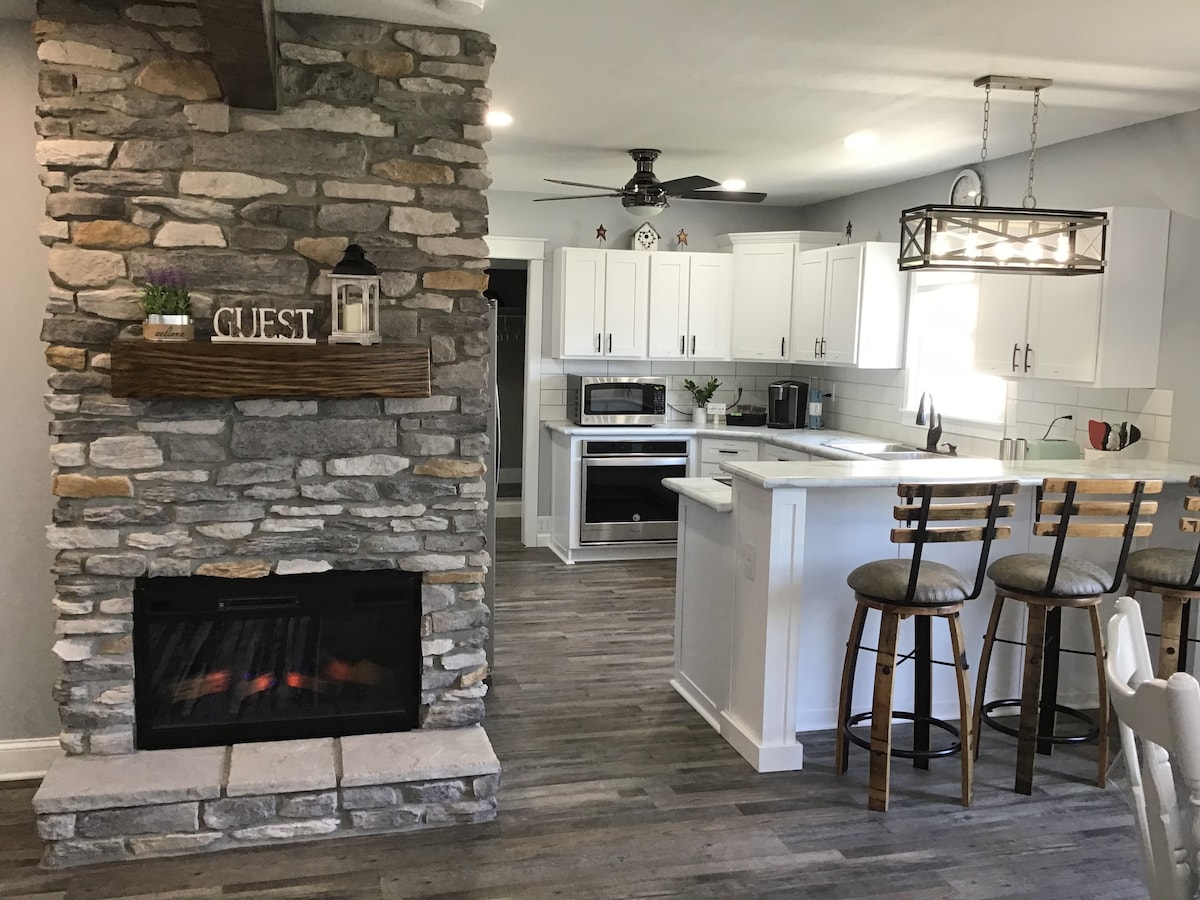 Komplett renoviertes, hundertjähriges Haus direkt neben der Sandy Springs Brewing Co. mit allen modernen Updates und Annehmlichkeiten. Das Hotel liegt in der Innenstadt in unserem schönen Dorf Minerva, Ohio & bequem zu Fuß von vielen anderen lokalen Restaurants und Lebensmittelgeschäften entfernt. 3 Schlafzimmer, 2 1/2 Bäder mit Fliesen vom Boden bis zur Decke, große individuelle Insel mit Quarz-Arbeitsplatte, private Außenterrasse, Veranda mit Schaukelstühlen, atemberaubender Steinkamin & TV und mehr!