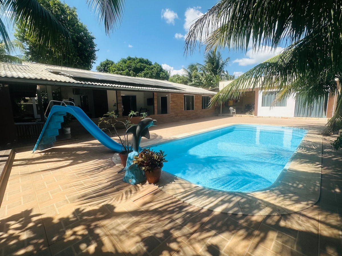 Casa espaçosa e aconchegante com piscina e churrasqueira! Ideal para famílias e grupos de amigos, localizada a apenas 15 minutos do centro, a nossa casa oferece todo o conforto que você precisa para relaxar e aproveitar suas férias. Com 3 quartos, 3 banheiros, cozinha completa e uma ampla área de lazer com piscina e churrasqueira, você terá momentos inesquecíveis. Aproveite o melhor das duas coisas: o conforto do lar e a diversão de uma casa de férias!