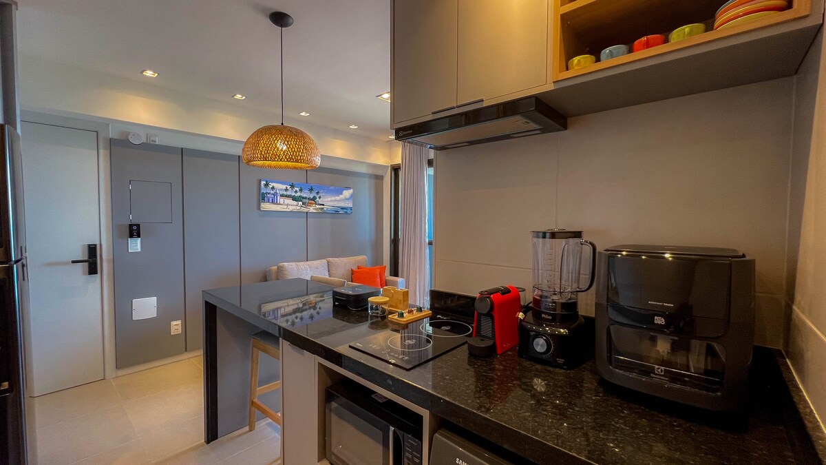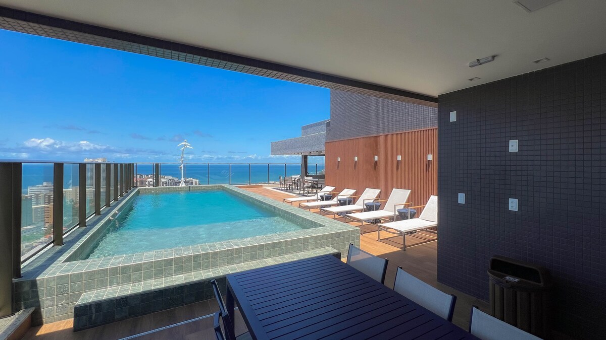 Comfortable, modern and finely decorated apartment in the brand new Building 535 Barra, with a beautiful view of Praia do Farol da Barra. The apartment has split air conditioning in all rooms, 50" Smart TV, 500Mb Wi-Fi (optical fiber), washing machine and dryer, swimming pool, gym and private parking. Central and privileged location, close to the bustling nightlife of Barra and a few meters from its delicious natural pools and its main tourist spot - Farol da Barra.