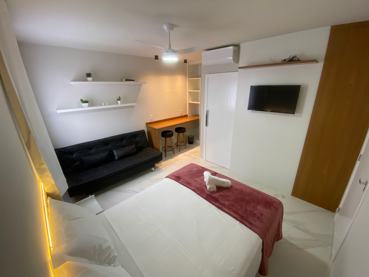 Der Komfort einer schönen Suite mit Blick auf die blaue Schaukel des Pools. Perfekt für eine 4-köpfige Familie. Doppelbett Doppelbett Bettwäsche und Handtücher sind im Preis inbegriffen. ✅ Klimatisiert ✅ ° Minibar; ✅ WLAN 300 MB ✅ ° TV; ✅ Swimmingpool 🏊 ✅ Gourmet-Bereich ✅ Elektrischer Reistopf ✅ Elektrische Gabel ✅Heißluftfritteuse ✅ Grill Eigenständiger ✅ Eingang. Es ist 2,6 km vom Strand Morro entfernt (5 Autominuten). Es lohnt sich, sich auszuruhen und die Wohnung zu genießen. 🚫 RAUCHEN IN DER WOHNUNG VERBOTEN!!!