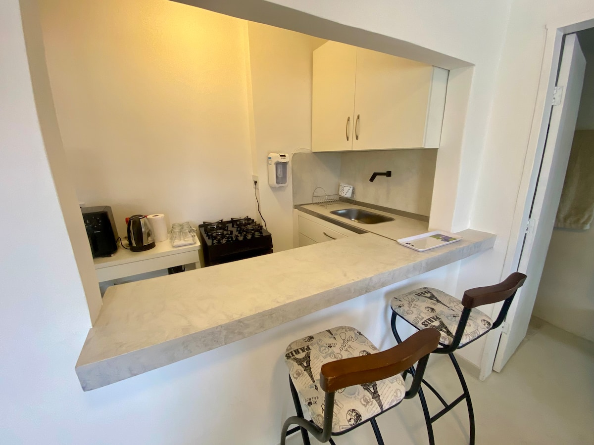 Geräumige Wohnung mit einer privilegierten Lage, nur 300 m vom Zentrum entfernt, in einer ruhigen und sicheren Straße. Lass dein Auto auf dem privaten Parkplatz und du bist in nur 10 Minuten zu Fuß mitten in den Restaurants, Bars und Sehenswürdigkeiten des charmanten Pirenópolis. Wir bieten Komfort und Privatsphäre, ein Queensize-Bett, ein eigenes Bad und alles, was du für einen guten Snack oder ein Frühstück benötigst. Luftig, mit Fenstern und einem Balkon mit Blick auf den Garten, sorgen sie für einen erholsamen Aufenthalt. Es gibt einen Supermarkt und eine Apotheke 150 Meter entfernt.
