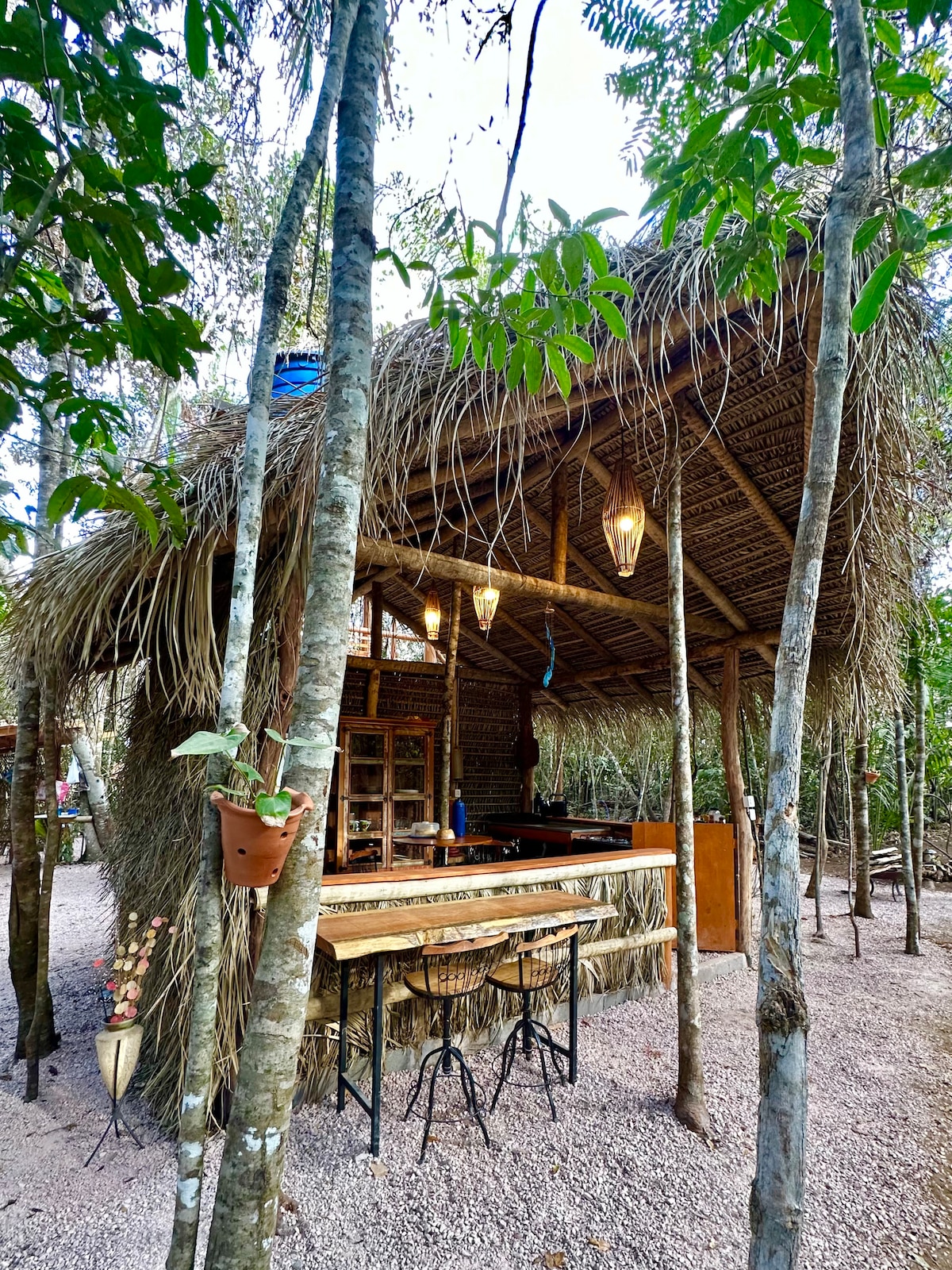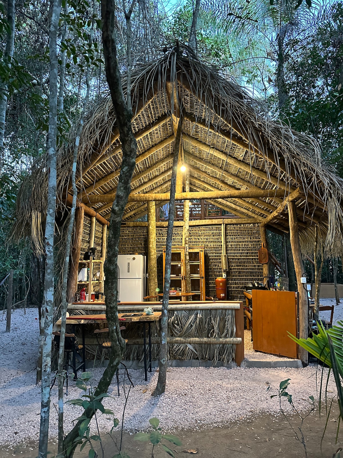 Ambiente de mata de cerrado preservado com árvores centenárias. Rica flora e fauna onde muitas vezes somos presenteados pelo avistamento de animais da região . As margens do Rio São Miguel que com suas águas cristalinas forma muitos dos principais atrativos da região. Na área do Camping o Rio São Miguel forma uma piscina de mais de 100 metros, com praias de areia. Nossas dez barracas já vem equipadas com colchão de casal, roupas de cama e banho. Fogão a lenha, cozinha equipada. Aguá da mina.