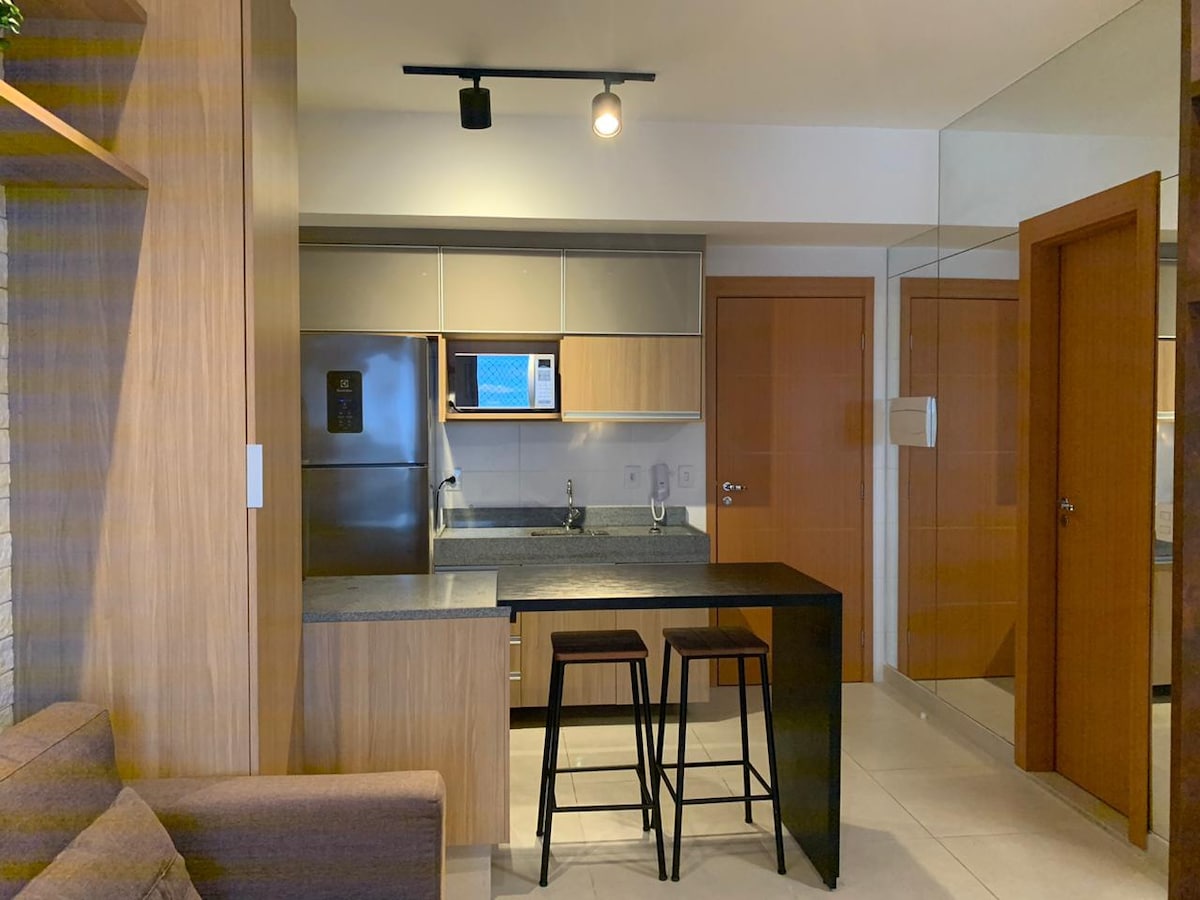 Dieses moderne Loft in einem neuen Gebäude ist perfekt für Paare und Reisende und verfügt über: ✅ **KINGSIZE-BETT** (Premium-Bettwäsche) ✅ **Pool, Fitnessraum, Grillplatz und Panoramaterrasse** ✅ **ultraschnelles WLAN** (Glasfaser) & **SmartTV mit Netflix** ✅ **Komplett ausgestattete Küche**, Waschmaschine und Klimaanlage ✅ **Kostenlose Pflegeprodukte** und Grundausstattung werden bereitgestellt Ruhige Lage im **Blue Building (Rua dos Caripunas 1016)** – ideal zum Entspannen oder mobiles Arbeiten!