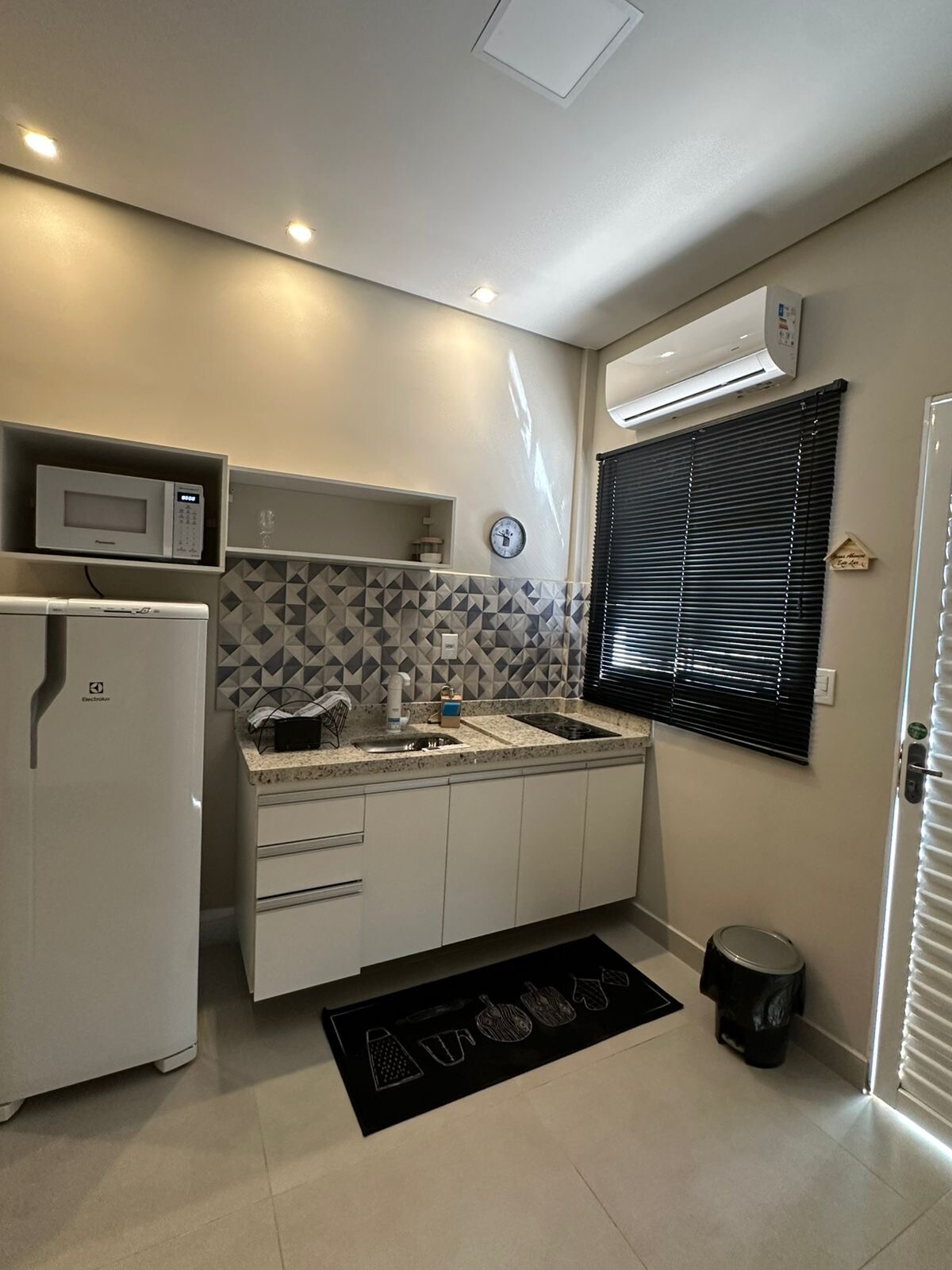 Apartamento completo, ideal para estadias curtas ou longas. Cozinha equipada com micro-ondas, frigobar e fogão elétrico. Garagem disponível por R$50/dia, com horários definidos (solicite antecipadamente). Segurança garantida com fechadura digital, cofre, câmera externa e guarda noturno. Conforto, praticidade e privacidade em um só lugar!
