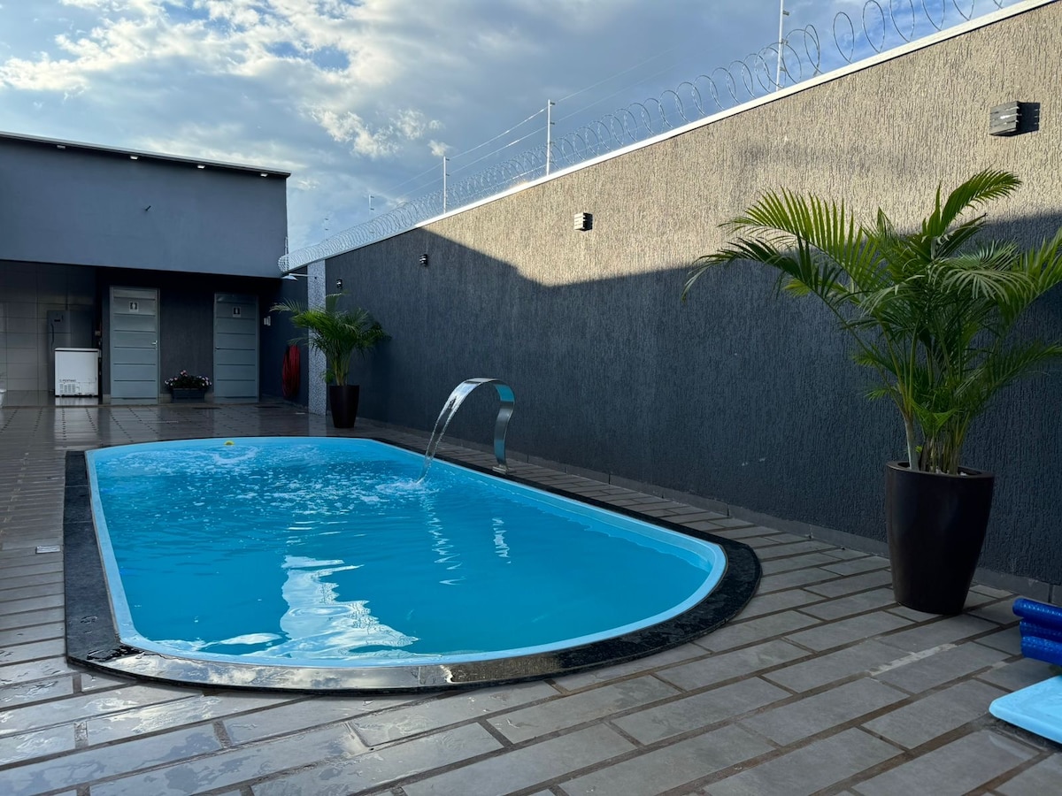 Colaboradores, amigos, família ou casal que querem privacidade e lazer no mesmo lugar Quarto 9 pessoas(treliches), banheiro, cozinha Banheiro com box externo, jacuzzi, espelho no teto Garagem pra 2 carros. Portão todo fechado 💦 Piscina privativa 🛁 Jacuzzi relaxante 🌿 Rede para descanso 🔥 Churrasqueira completa 🍹 Bancada estilo lounge drinks 🎱 Mesa sinuca min ❄️ Ar-condicionado 🛏️ Espaço confortável 🎉 Confraternizações e aniversários 👨👩👧 Finais de semana em família 💑 Momentos a dois