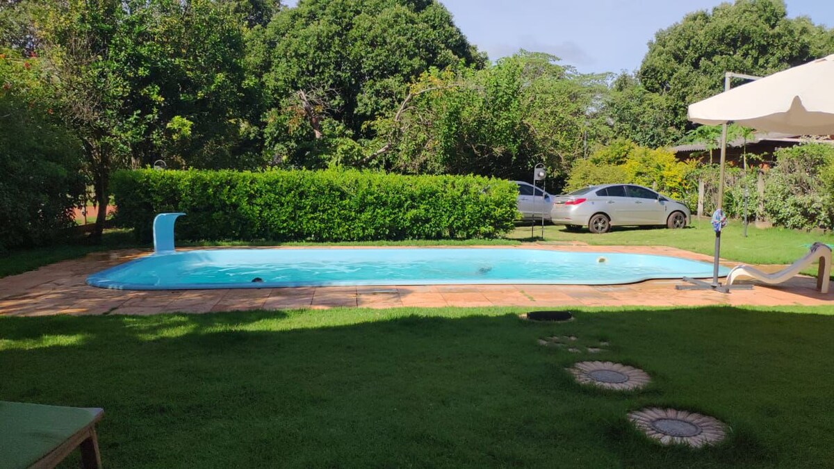 Die Recanto do Sossego Farm befindet sich in der Gemeinde Bodoquena-MS. Hinter dem Haus befindet sich der Salobra River mit kristallklarem Wasser, wie die Flüsse der Gemeinde Bonito-MS. Der Bauernhof liegt in der Nähe des Nationalparks Bodoquena-MS und des berühmten Wasserfalls "Boca da Onça". Wir haben zwei unabhängige Häuser für Ferienunterkünfte zur Verfügung: Haus 1 (Glück) und Haus 2 (Alegria). Der Recanto do Sossego Farm ist ideal, um mit Familie oder Freunden zu genießen.