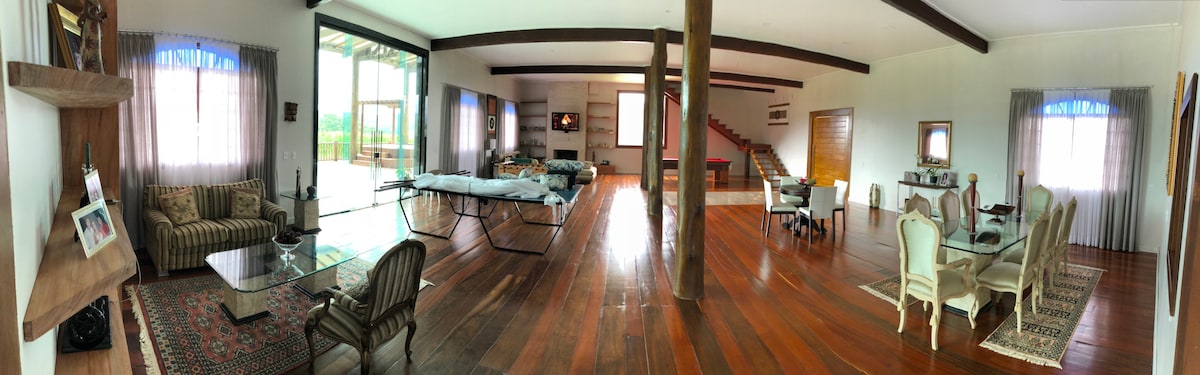 Rustikales und charmantes Landhaus mit 5 Suiten und 1 Mezzanine-Schlafzimmer, mit atemberaubender Aussicht. Ideal für Familien und große Gruppen, viel Grünfläche, Kamin, Grill, Jacuzzi, Spielplatz im Freien mit Rutsche, Schaukel, Ruhe und Privatsphäre. Kompletter Hausmeisterservice (separat), Kabelfernsehen, WLAN, Heizung und Parkplatz. Genießen Sie die Kühle der Serra da Mantiqueira mit dem Komfort, 20 km vom geschäftigen Zentrum von Campos do Jordão und 12 km vom Zentrum von São Bento do Sapucaí entfernt zu sein.