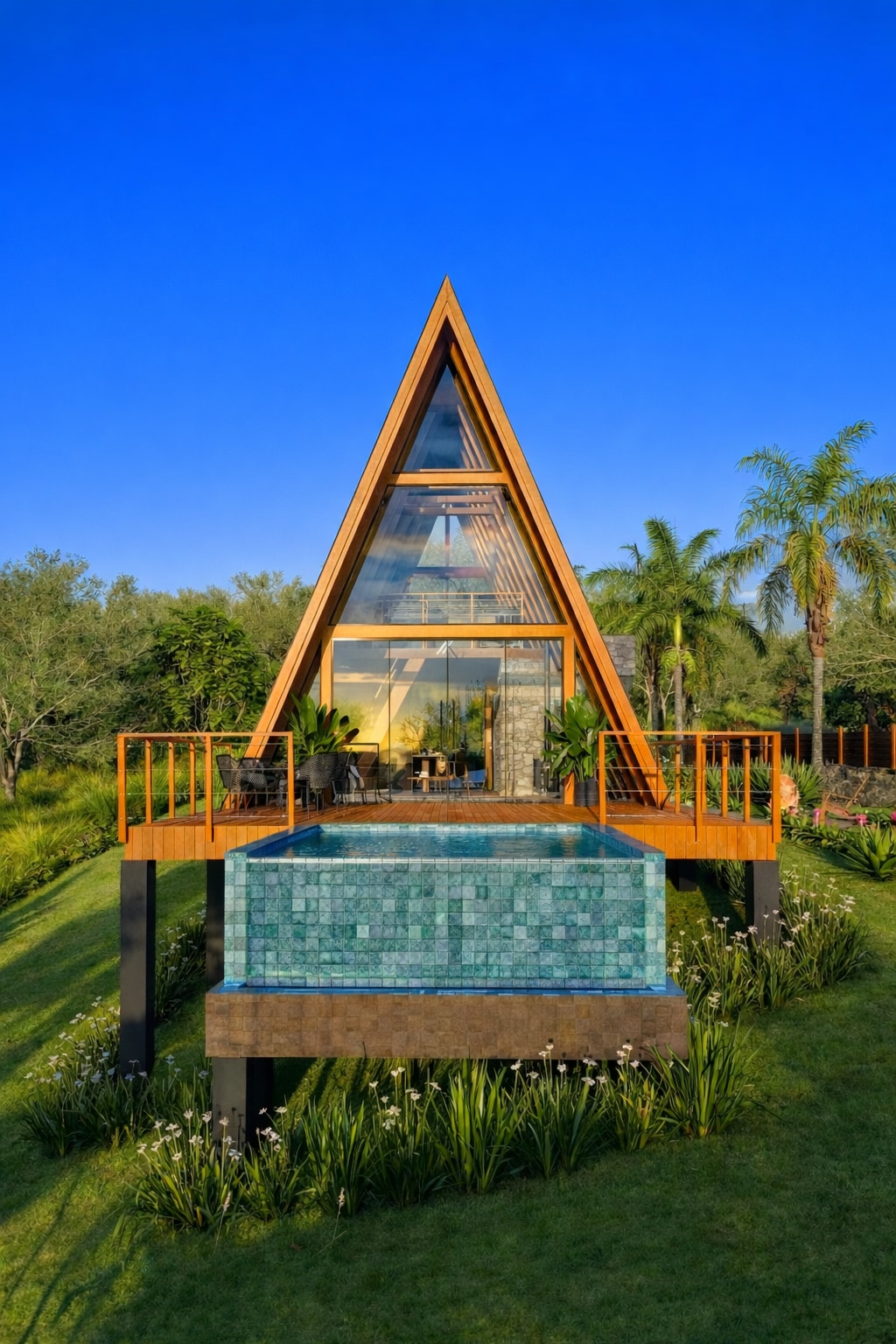 Holzhaus mit Pool und Spa Geschlossene Wohnanlage