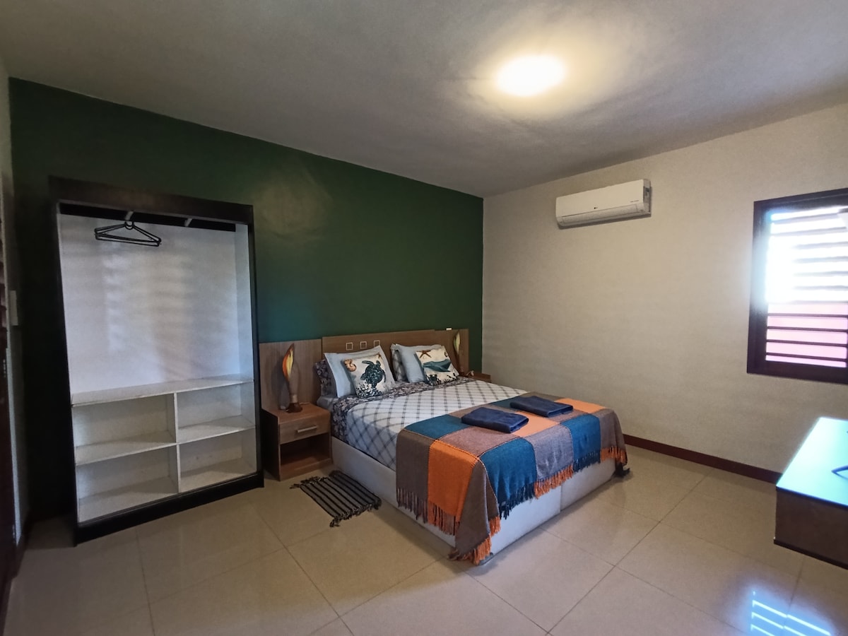 Gemütliche Suite, die in der aufgehenden Sonne und in der Abenddämmerung wunderbaren Schatten bietet. Sehr ruhig, um sich nach den Aktivitäten am Tag auszuruhen, wir haben den Gesang der Vögel der Natur am Morgen. Es befindet sich im ersten Stock und die Küche im zweiten Stock. Unser Standort befindet sich in der Nähe einer Hotelkette, die Zugangseinrichtungen für unsere Gäste (Bäckereien, Wäschereien und andere) bietet, die in unserem Reiseführer zu finden sind. Buchen Sie jetzt und die Show geht auf uns!