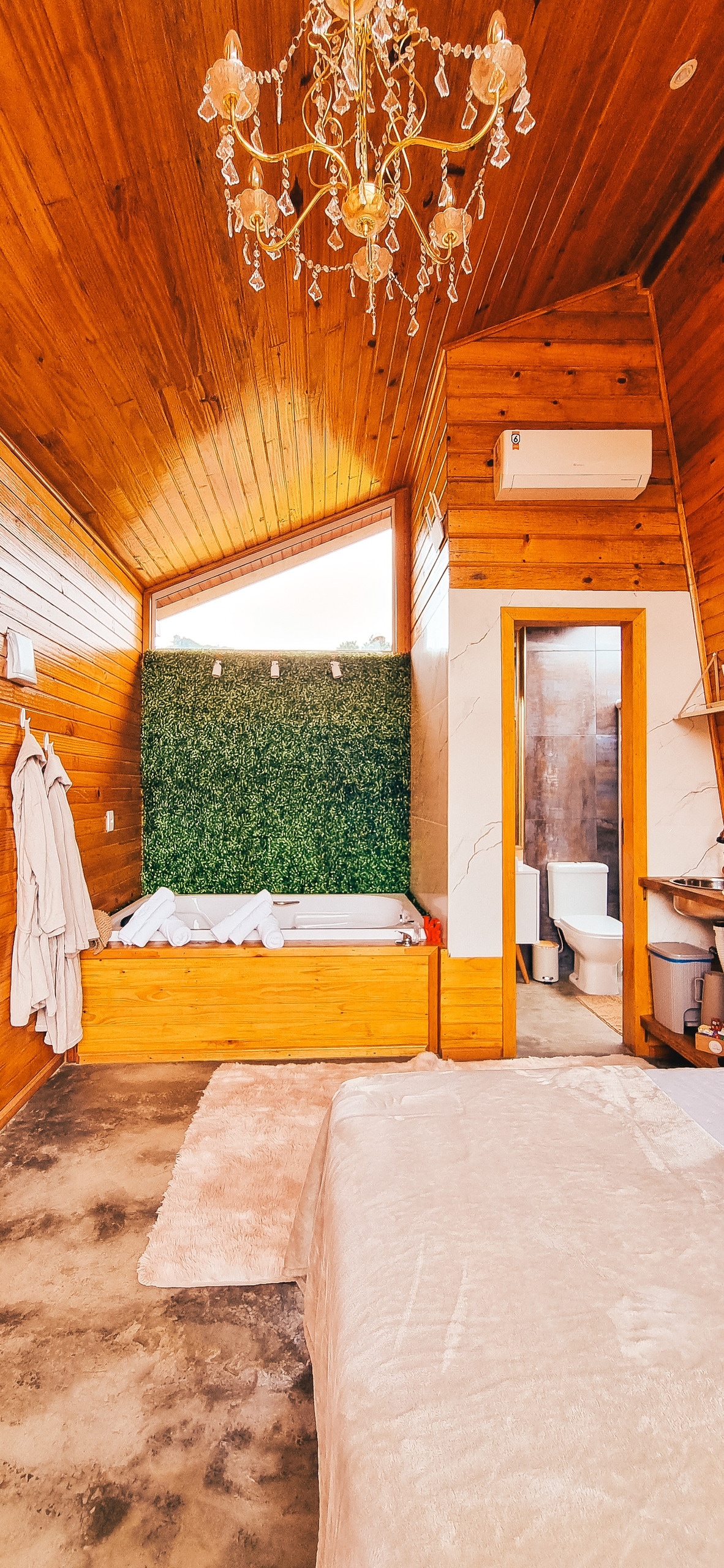 💫 Omega-Kabine – Liebe Zuflucht inmitten der Natur 14 km vom Zentrum von Chapecó entfernt, einem Ort, an dem die Zeit langsamer vergeht, lädt der Klang der Natur zum Kuscheln ein. ❤️ Was das Erlebnis einzigartig macht: Zwei Kamine Automatisierte Beleuchtung Glasbad Barbecue Grill Exklusiver Zugang zum Fluss und zur Lagune Bett-, Tisch- und Badwäsche inklusive Frühstück inbegriffen Egal, ob Sie die Liebe feiern, Ihre Energie erneuern oder einfach nur wieder mit dem Wesentlichen in Kontakt treten möchten, Cabana Ômega ist das perfekte Ziel!