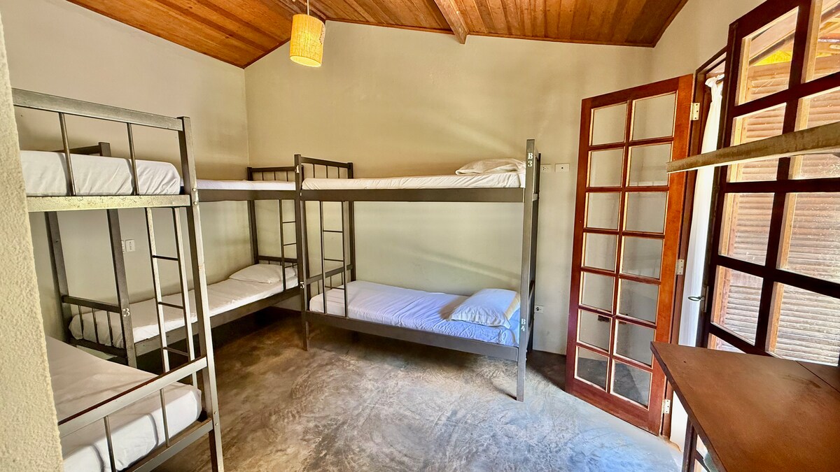 O Hostel Quintal Guest é simples, tranquilo e acolhedor — a apenas 2 minutos a pé da Praia Grande, em Ubatuba. Atualmente, é o hostel mais bem avaliado da cidade. Este é o Quarto Compartilhado Misto, que acomoda até 6 hóspedes. O espaço conta com ar-condicionado, ventilador, armários individuais, luz e tomada em cada cama, além de cortinas para mais privacidade.