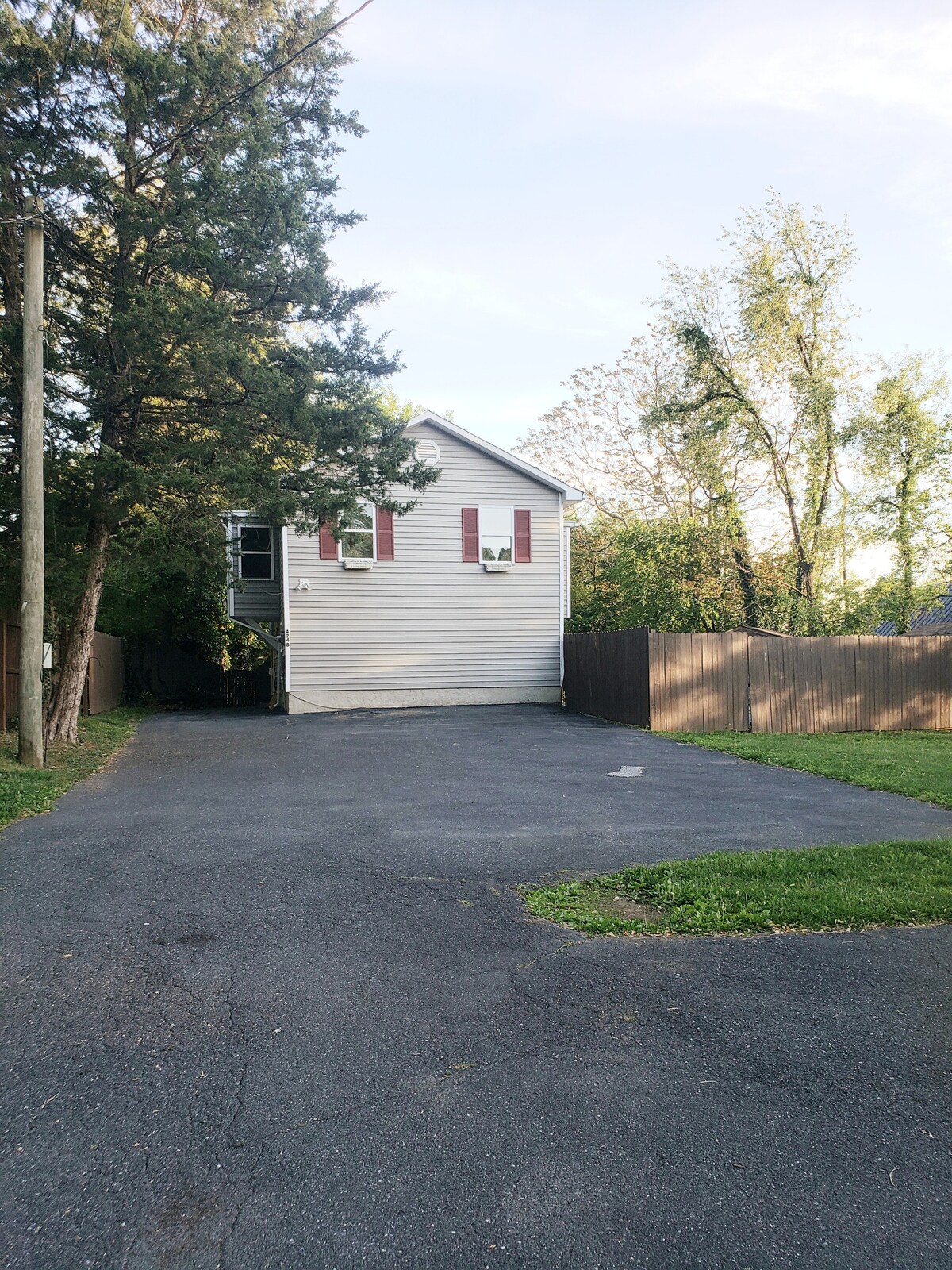 This 2 story house with vaulted ceilings is situated close to downtown Staunton in the heart of the Shenandoah Valley. Access to Shenandoah Nation Park and the Blue Ridge Parkway is just a short drive. This unique space has a King and Queen bed on the 1st floor, and a twin bed, futon, sofa bed and section on the 2nd floor. The ample parking allows for multiple large vehicles. The yard has a covered seating area and is completely fenced in. Wifi is fast, 58in smart TV, hand crafted decor, privacy